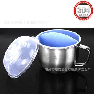 Taza de comida rápida de acero inoxidable 304 con tapa, taza de comedor, compartimento para estudiantes, lonchera, vajilla para el almuerzo, taza multiusos para fideos instantáneos