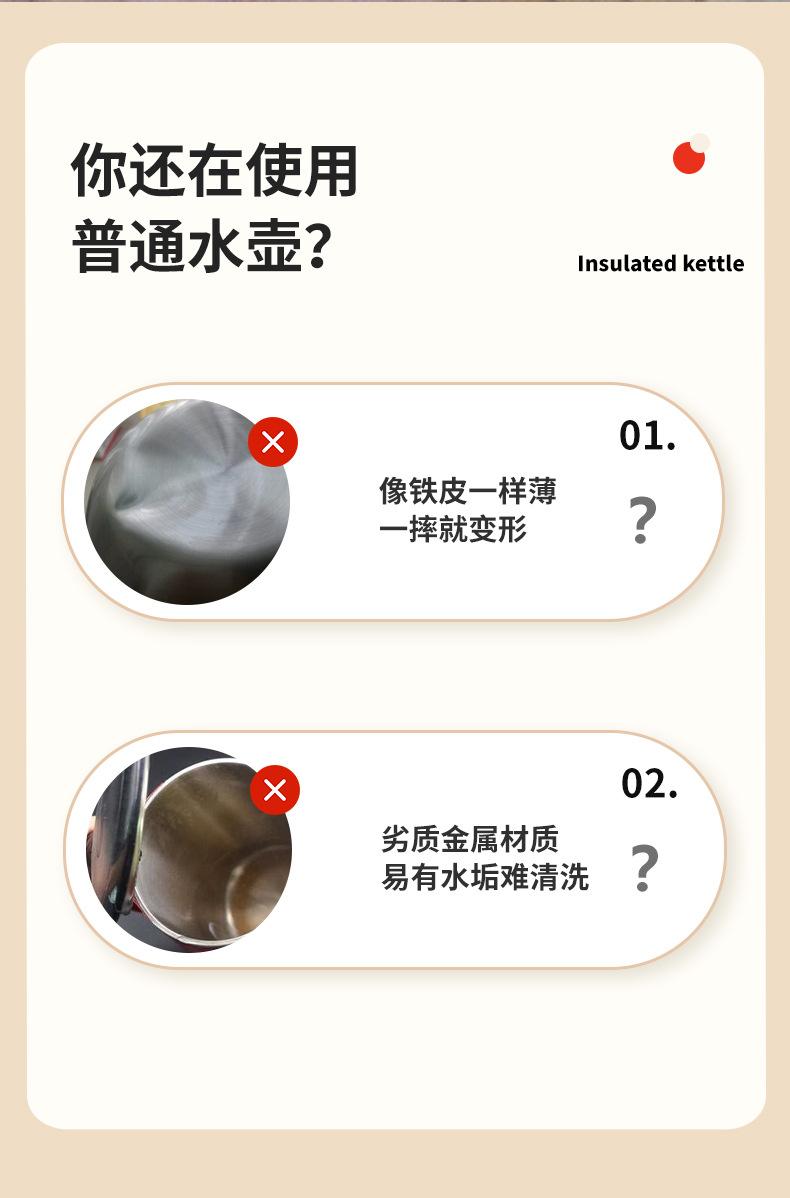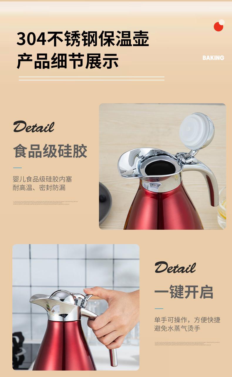 Tipo de vacío: El cuerpo del hervidor está hecho de acero inoxidable y está aspirado para mantenerlo caliente o frío.