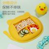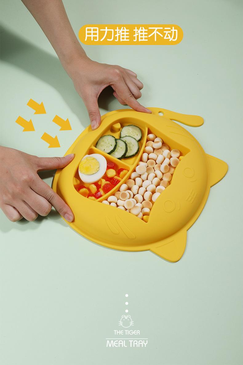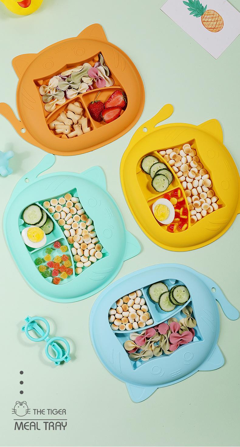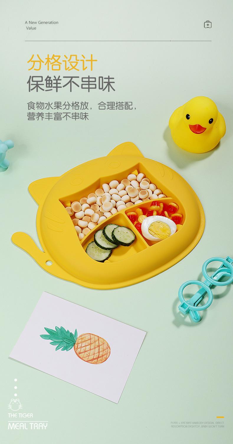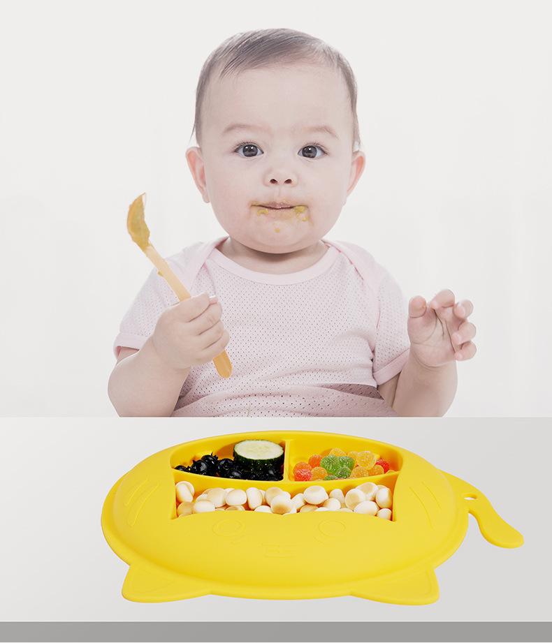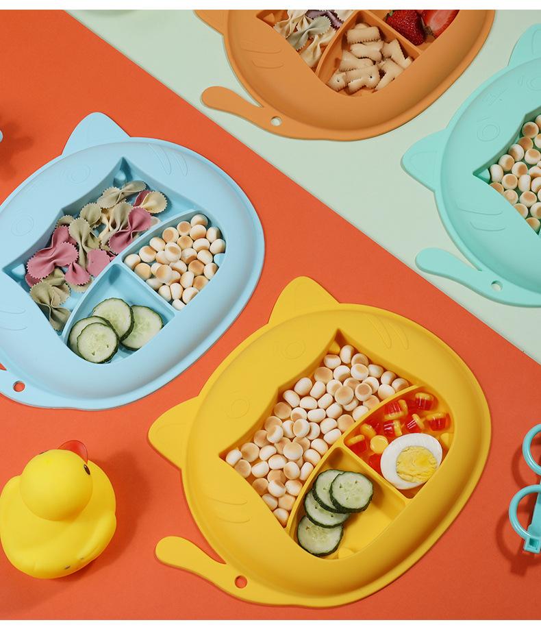 Plato de cena para bebé, vajilla infantil de silicona con ventosa, juego de cucharas de entrenamiento para aprender a comer con dibujos animados, tazón de comida