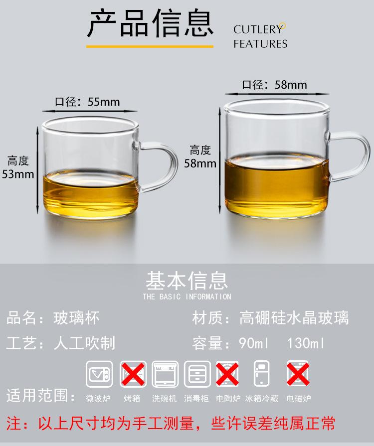 Juego de té de kung fu, taza de vidrio transparente resistente al calor engrosada, taza de té pequeña, fábrica de borosilicato alto, venta al por mayor