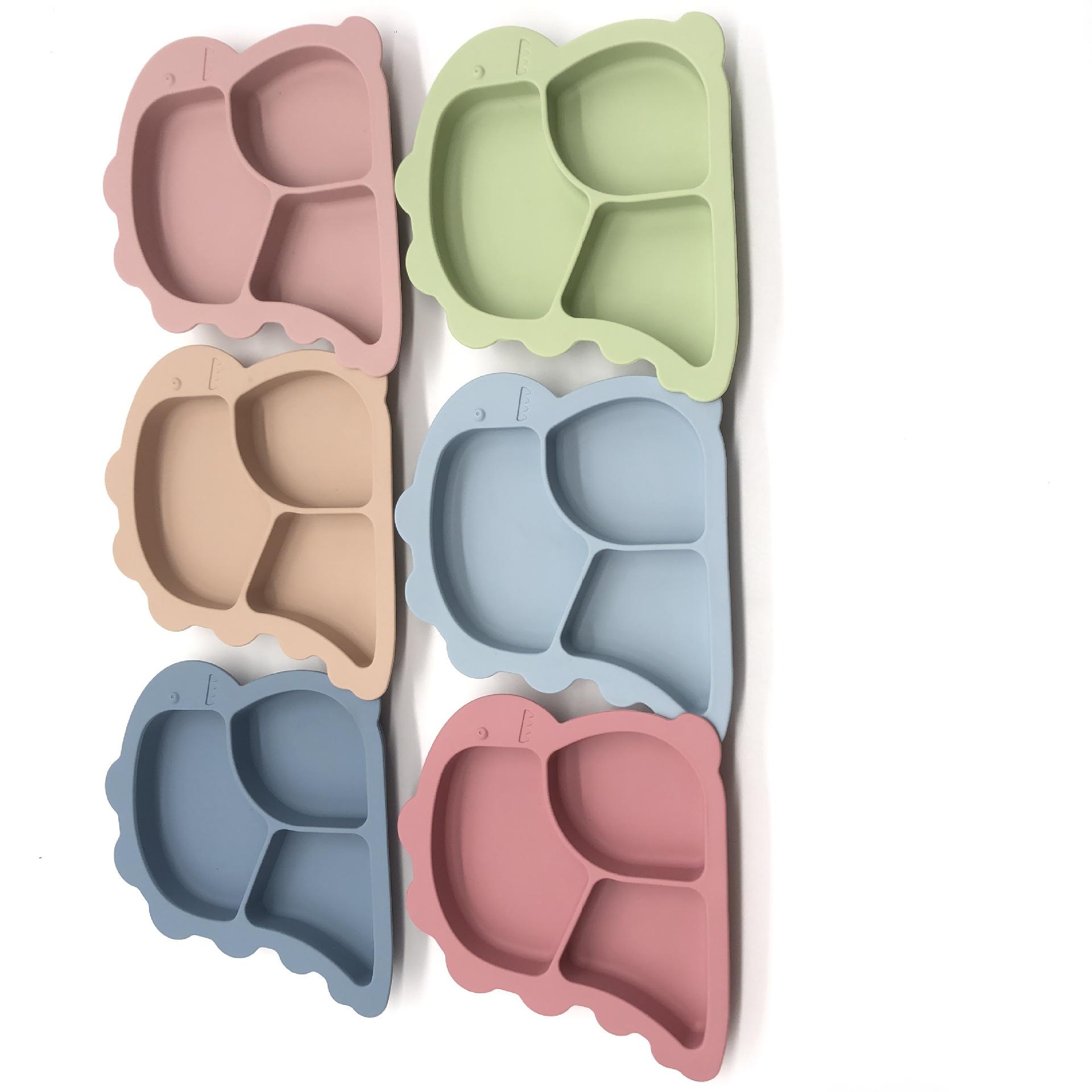 Nuevo Plato de Cena de Silicona de Dinosaurio de Dibujos Animados Transfronterizo para Bebé, Tazón Creativo de Silicona para Alimentos, Vajilla de Silicona para Niños al por Mayor