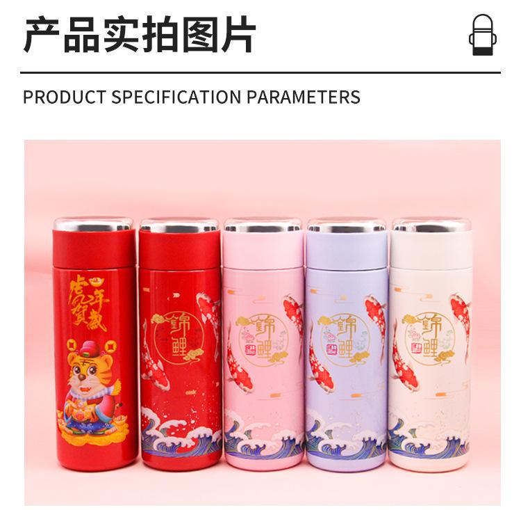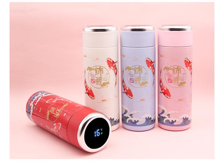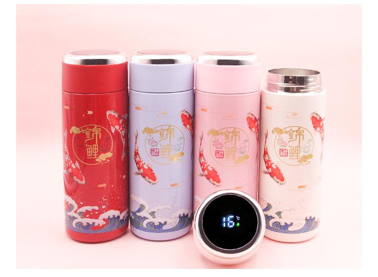 Nueva taza de agua con medición de temperatura inteligente al vacío 304, taza térmica creativa Koi National Tide, taza de regalo empresarial de acero inoxidable