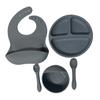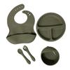 Set de Vajilla Infantil de Silicona Set de Cinco Piezas Suplemento Alimenticio para Bebé Silicona de Grado Alimenticio Tenedor Cuchara Babero Suministros para Madre y Bebé