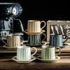 Exquisita taza de café y platillo de cerámica con diseño de flores a rayas y combinación de té de la tarde estilo retro japonés, taza de leche para desayuno y oficina