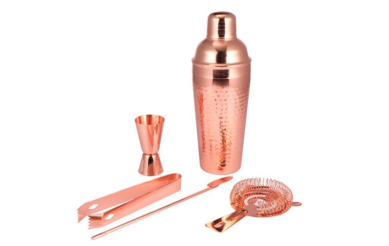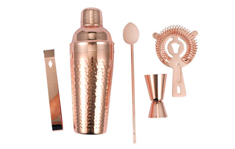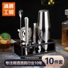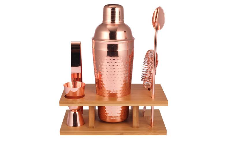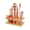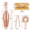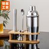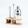 Suministro Directo Transfronterizo de Nuevo Juego de Coctelera de Acero Inoxidable Soporte de Bambú Herramienta de Coctelera Juego de 5 Piezas Se Puede Imprimir el Logotipo