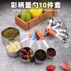 Juego de 10 tazas medidoras de acero inoxidable de fábrica con escala y mango de silicona, cuchara medidora, cuchara para hornear de cocina