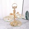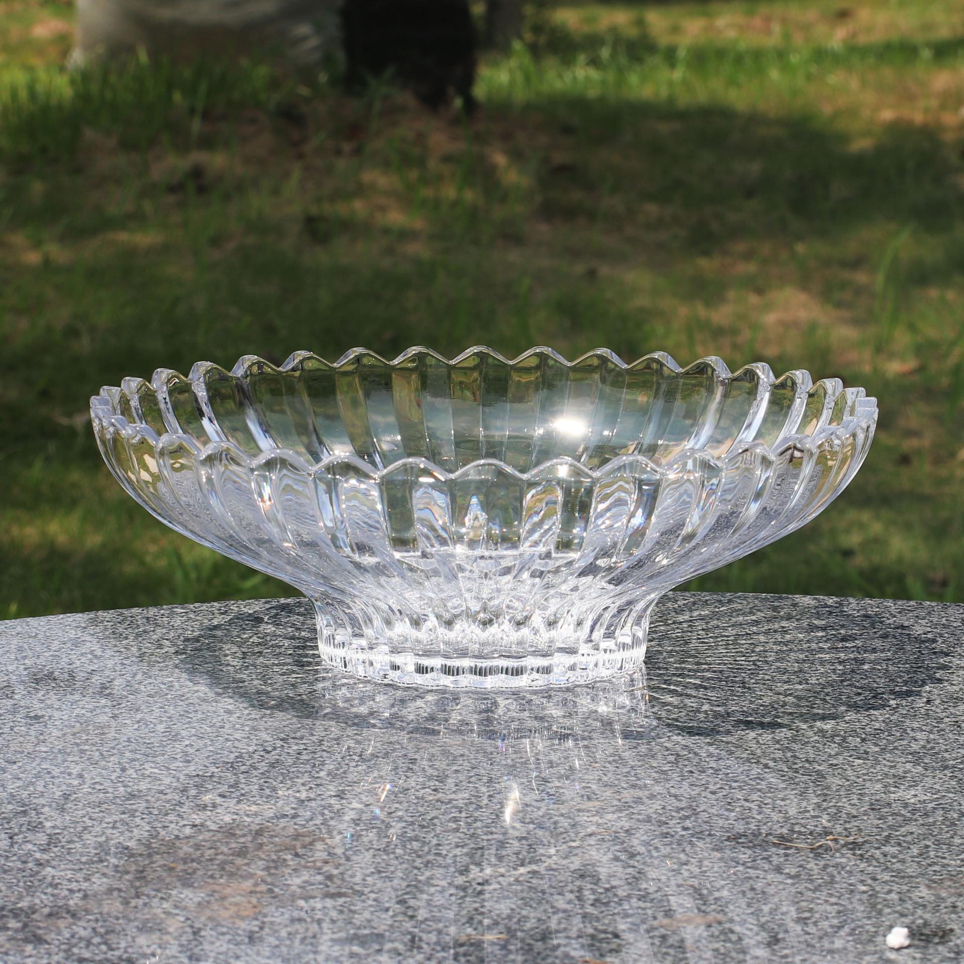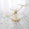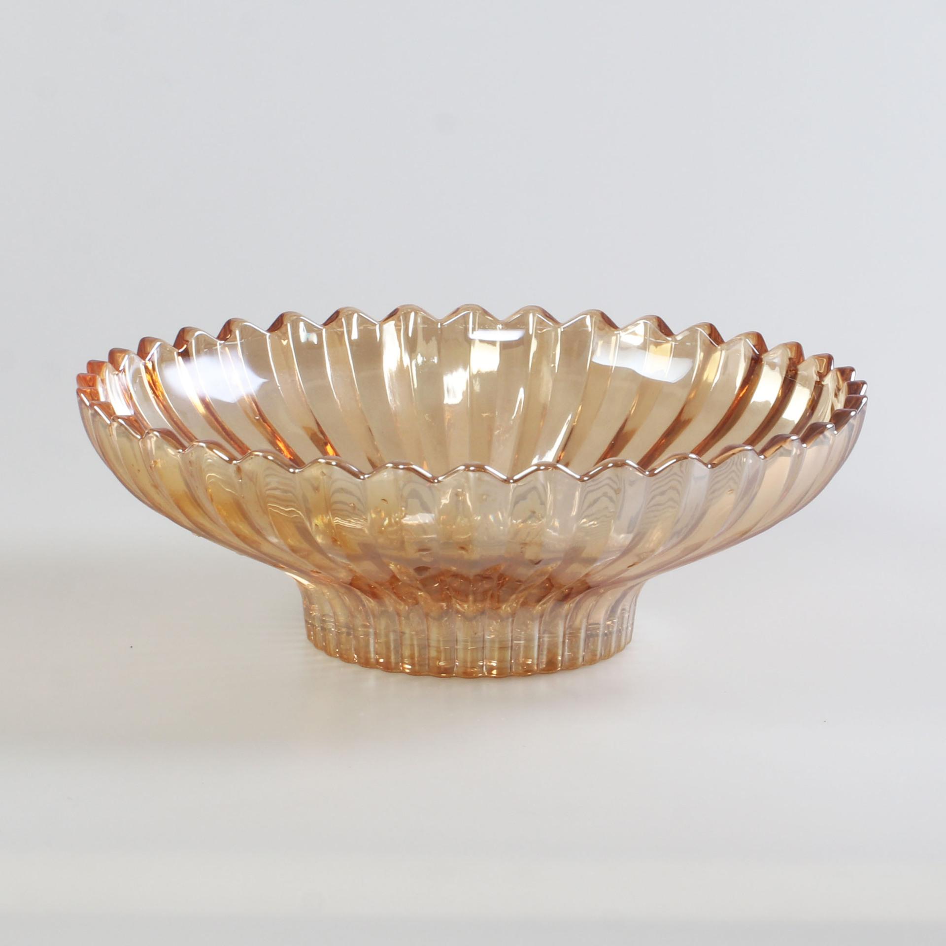 Plato de fruta de cristal de lujo ligero, grande, chapado en oro, para mesa de centro de sala de estar, plato de fruta seca a rayas, plato de aperitivos, plato de dulces
