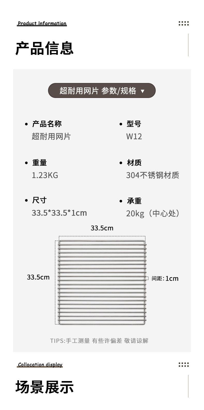 Rejilla de malla duradera de acero inoxidable 304 de Coman W12, rejilla para barbacoa, mesa de fuego para acampar, parrilla para barbacoa, rejilla para barbacoa
