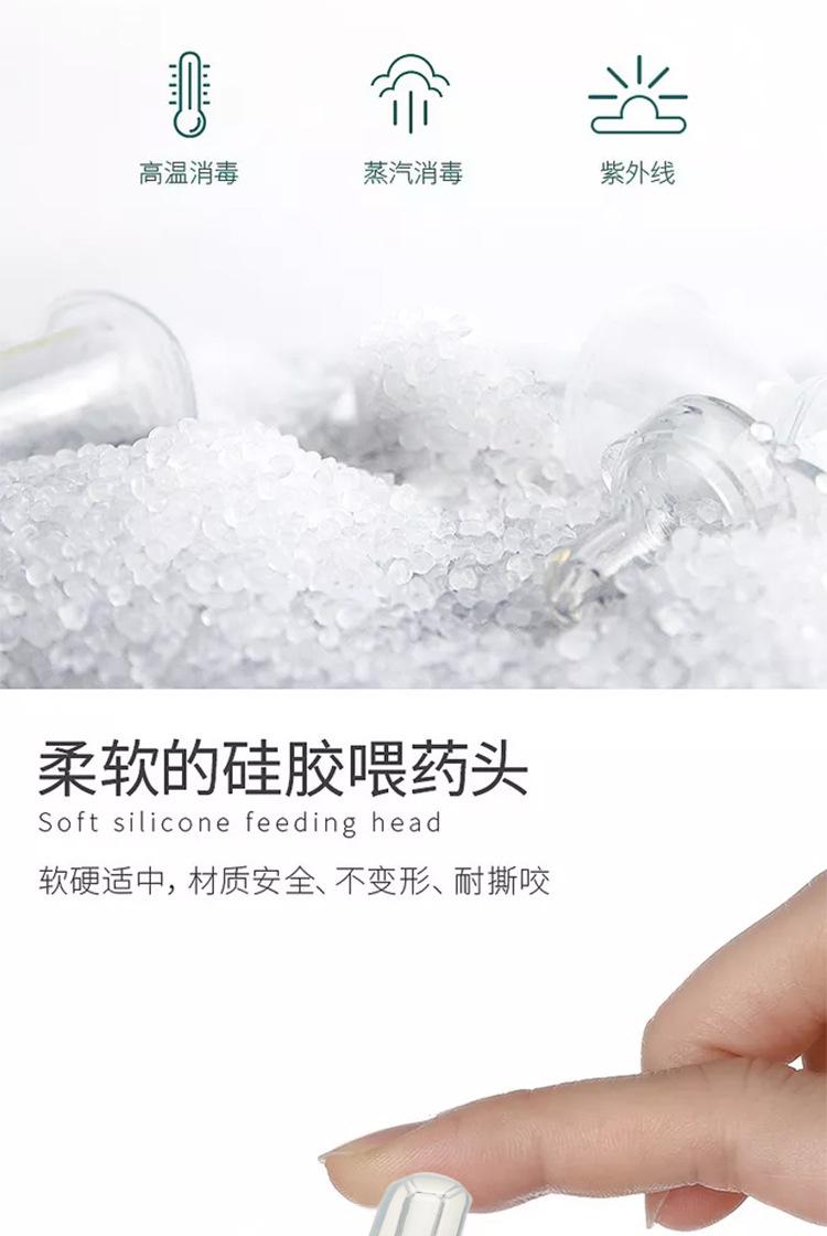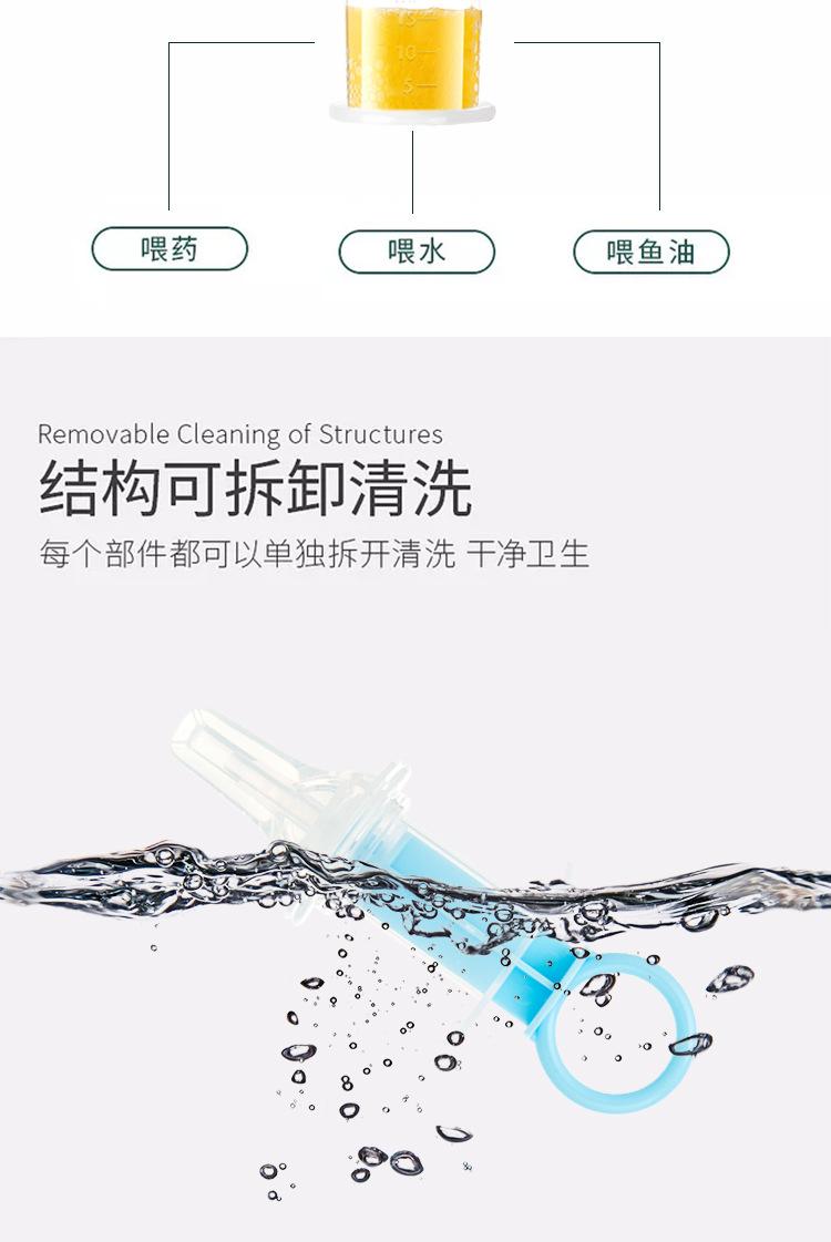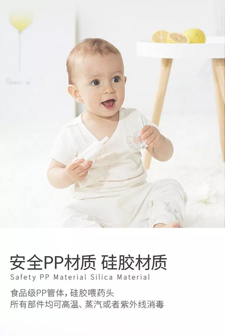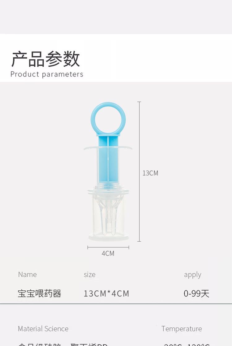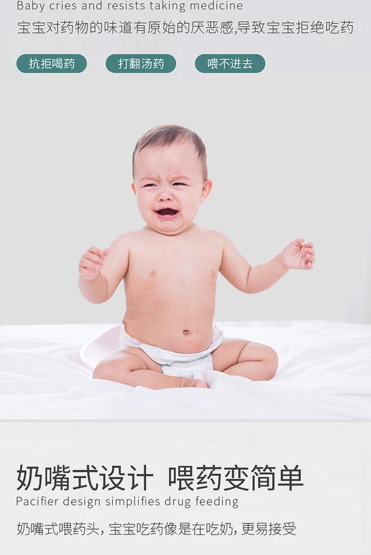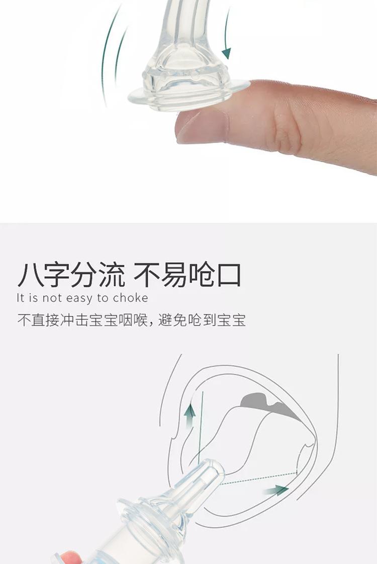 3. Diseñado específicamente para la administración de medicamentos a bebés, incorpora un sistema de entrada de líquido en ambos lados para evitar que el medicamento se inyecte directamente en la garganta, lo que previene eficazmente la asfixia. Además, evita que el medicamento pase a través del área gustativa del bebé y le cause asco, lo que simplifica y facilita la administración de medicamentos.
