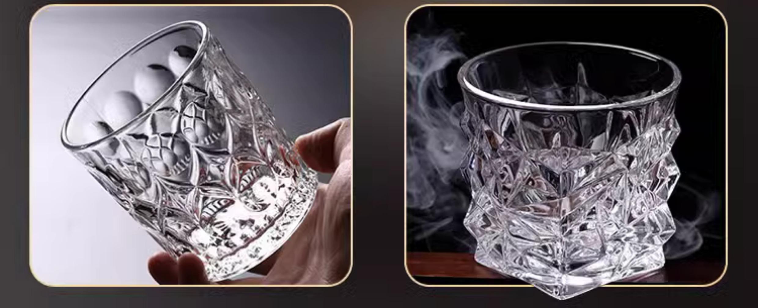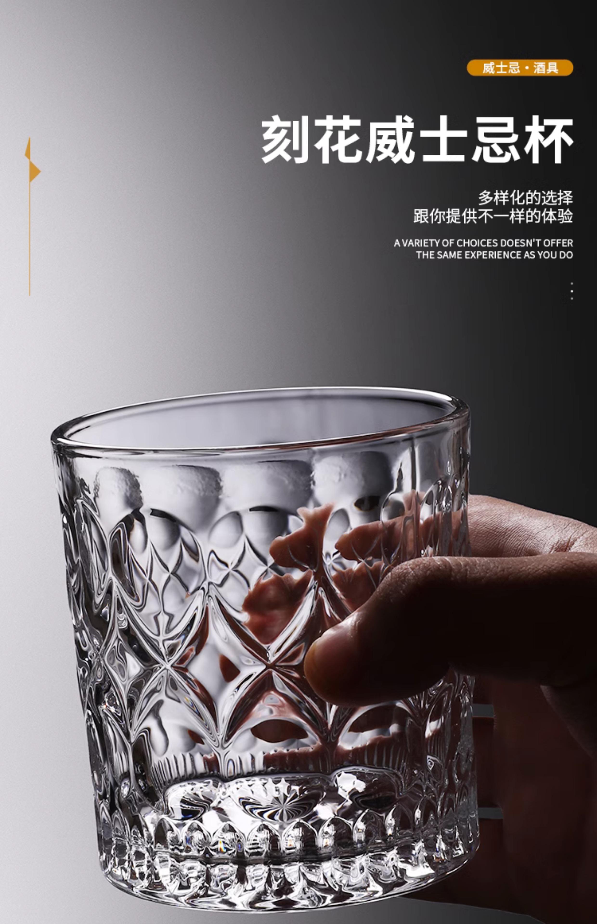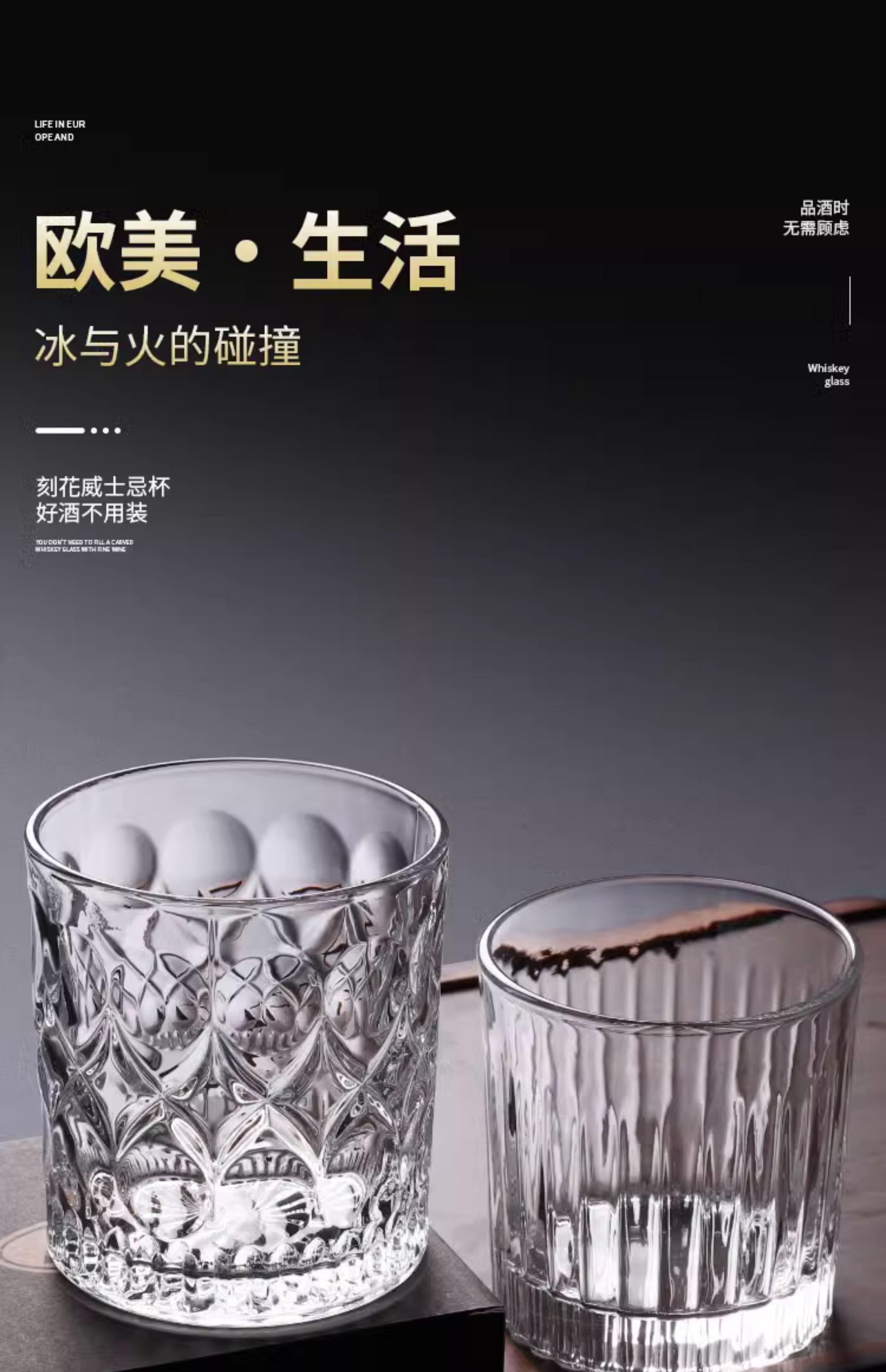 Striped whiskey glass-190ml, Engraved whiskey glass—300ml, Diamond whiskey cup—140ml, Bingling whiskey glass—1...