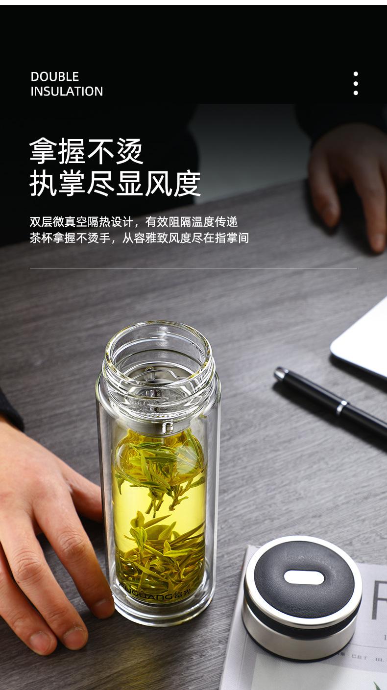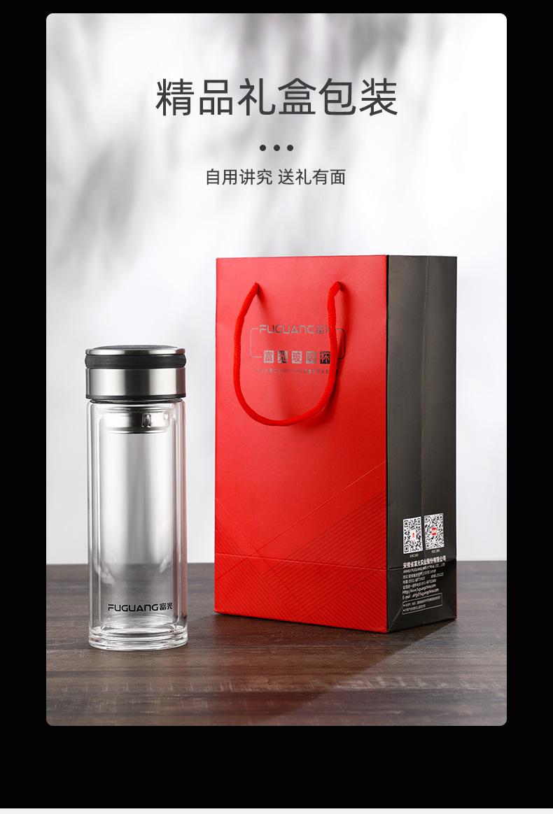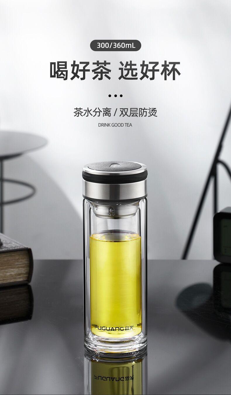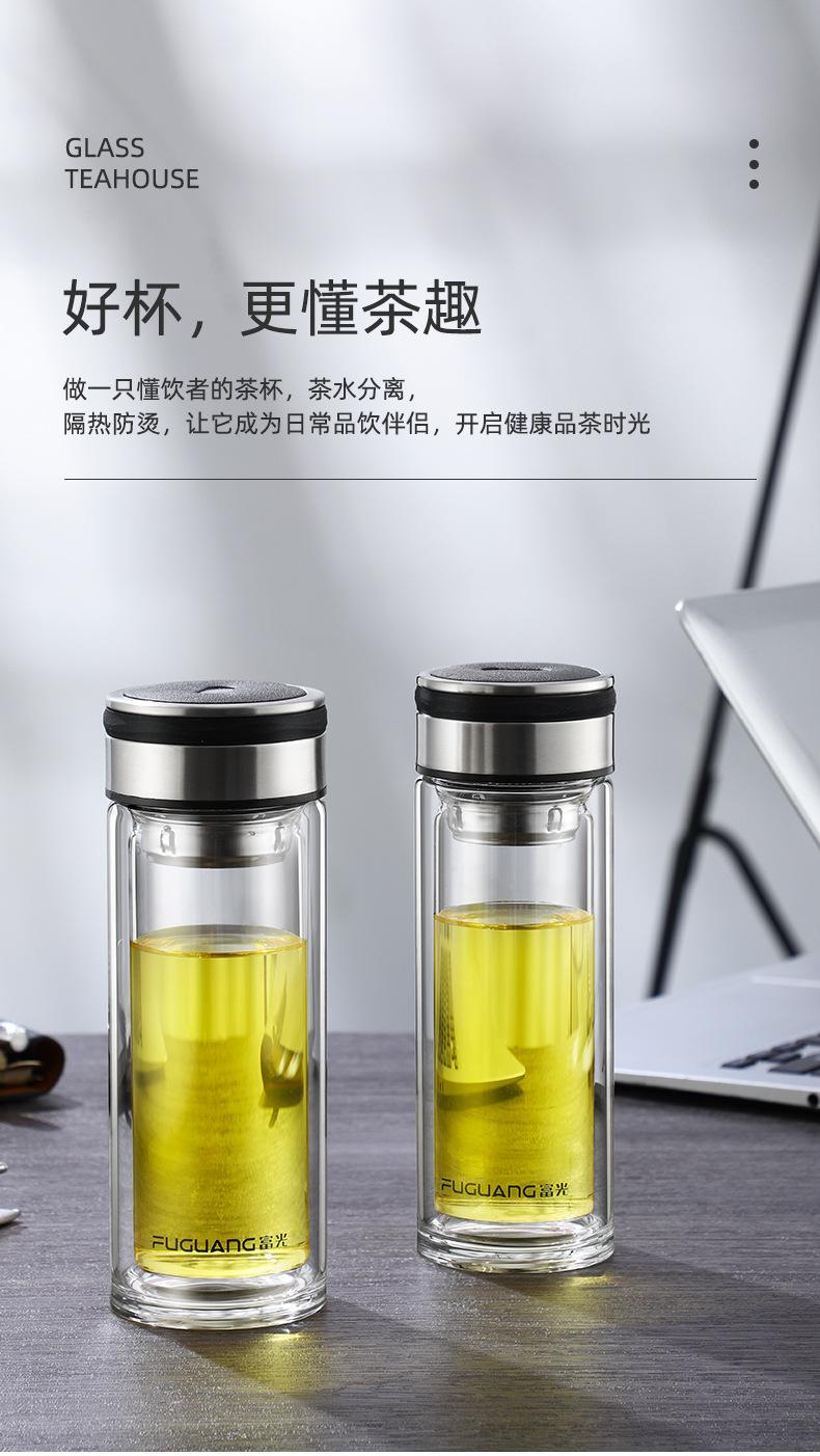 Fuguang vaso de té portátil con filtro de vidrio resistente al calor de doble capa regalo taza transparente oficina letras compra grupal logotipo vaso de agua