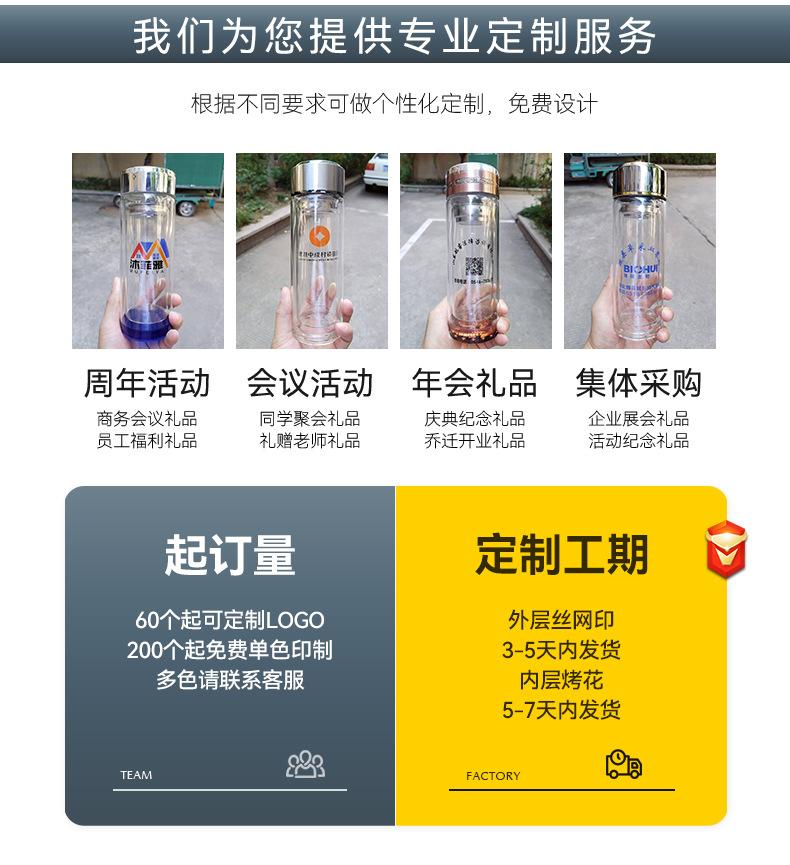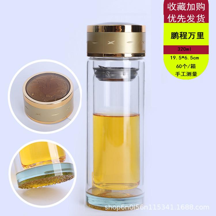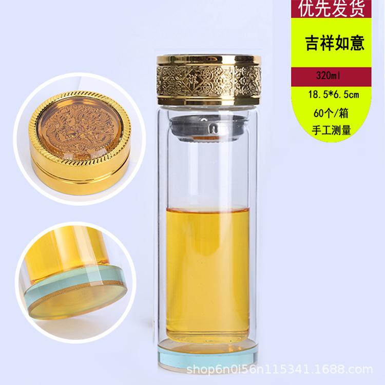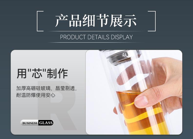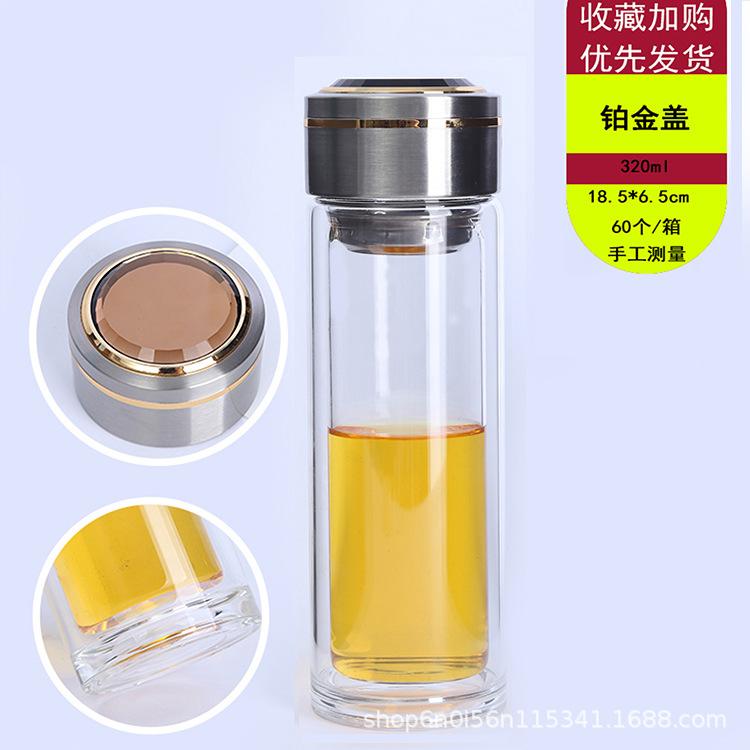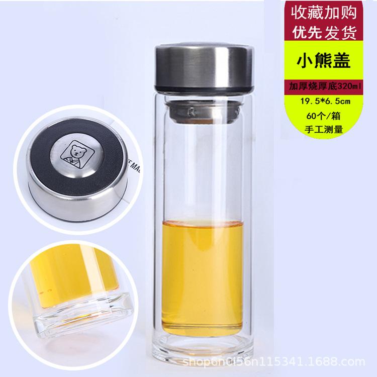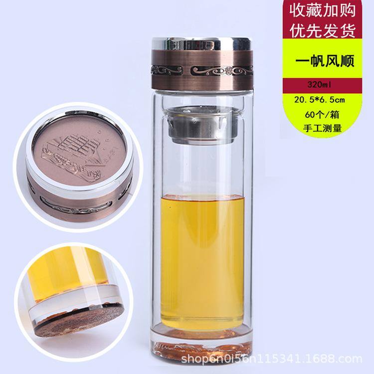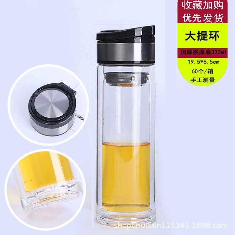 Taza de té de vidrio de doble capa al por mayor, vidrio de borosilicato, resistente a altas temperaturas, taza de agua, logotipo impreso, taza publicitaria, vidrio de doble capa