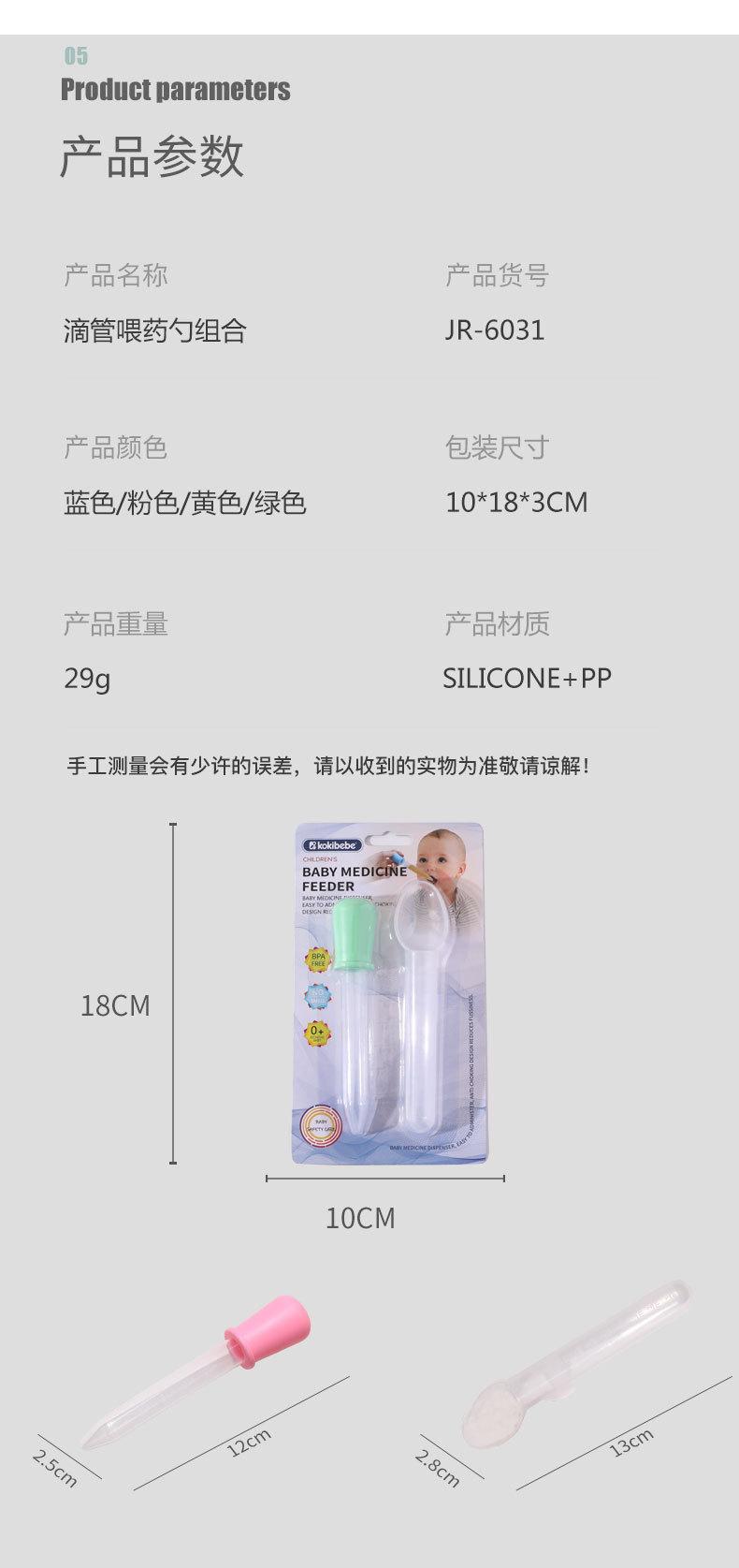 [Tamaño] Tamaño del embalaje 10*18*3CM Cuentagotas 12*2.5*2.5CM Cuchara para alimentación 13*2.8*3CM