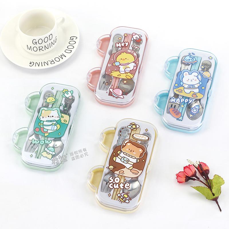 Nombre del producto: Caja de Cubiertos de Acero Inoxidable de Dos Piezas con Dibujo Animado de Show de Talentos