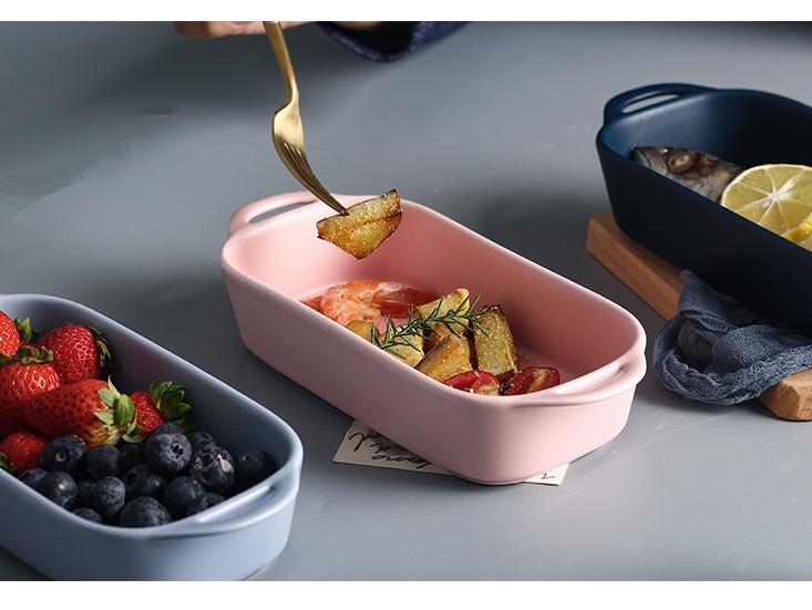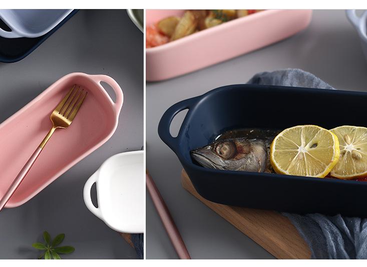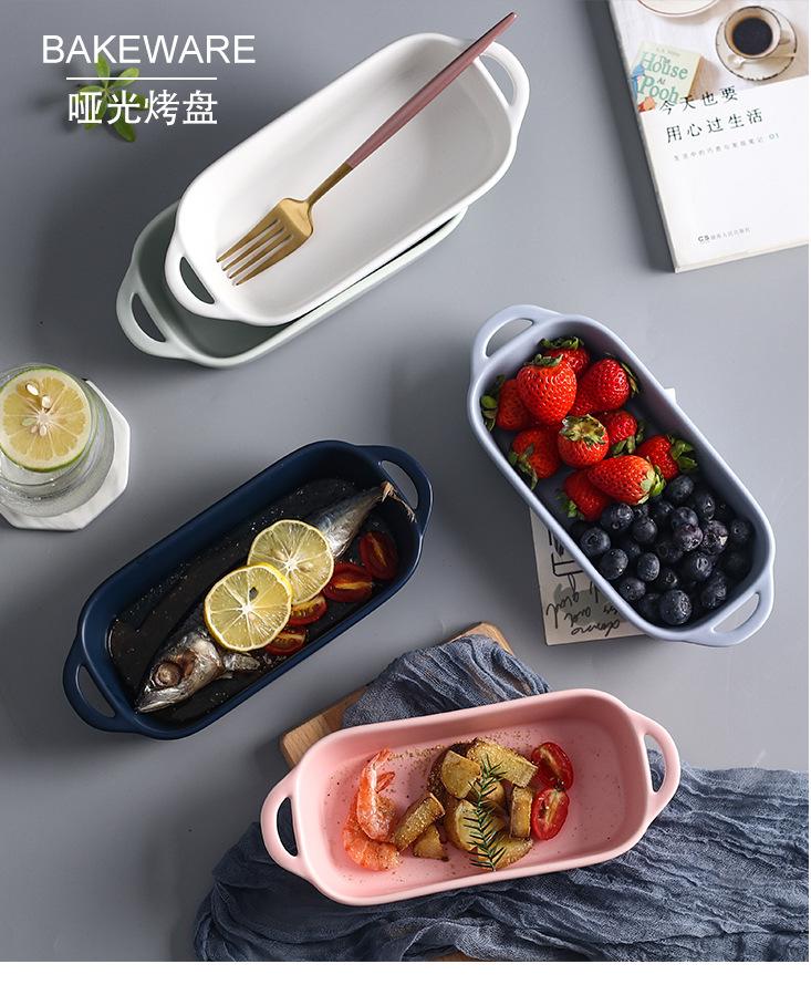 Matte Binaural Strip Bakeware-White, Matte double ear baking pan-pink, Matte Binaural Strip Bakeware-Blue, Mat...