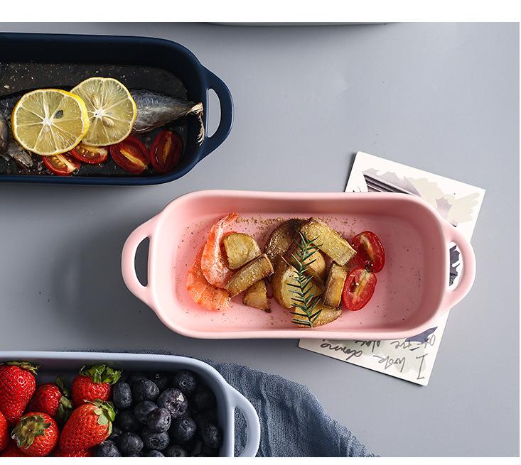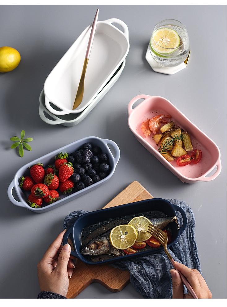 Plato de cerámica creativo para hornear, plato de arroz horneado con queso largo binaural, vajilla para el hogar, plato para hornear al horno, plato de comida occidental