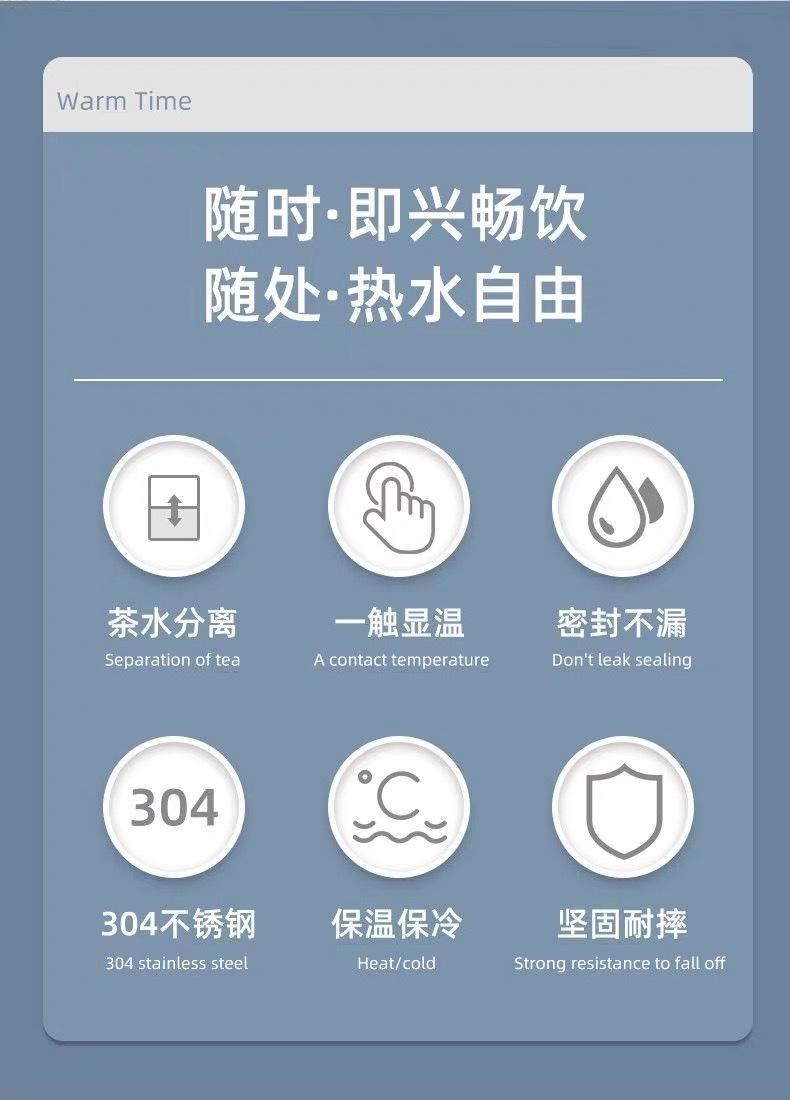 Thicken, General, Household, Portable, Vacuum, Insulation, Customizable, Anti-fall, Temperature Measurement, Tea water separation