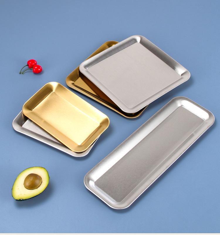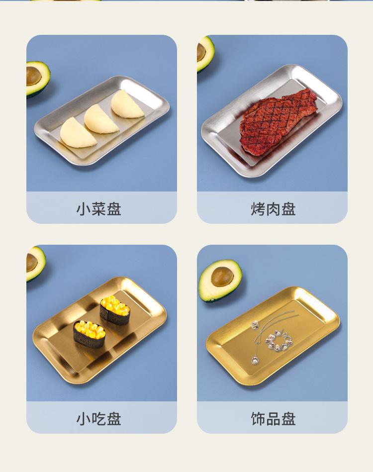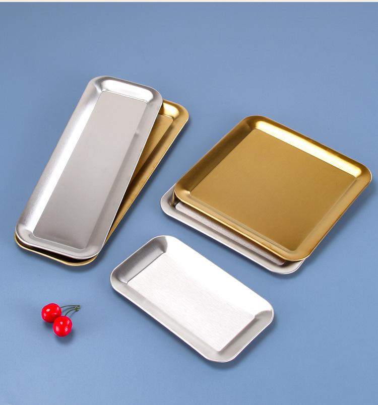 Plato cuadrado multifuncional de acero inoxidable 304 coreano, plato de barbacoa cuadrado dorado, bandeja de postre creativa, plato de postre para hornear