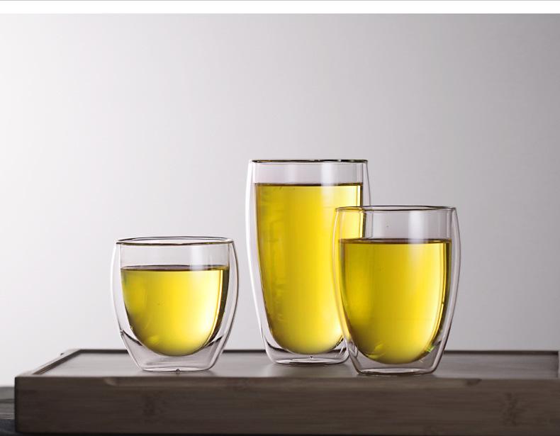 Taza de vidrio de doble capa engrosada, taza con forma de huevo, taza de café doméstica aislada, taza de agua, taza de jugo, taza de leche, taza de café