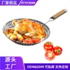 Plato para Barbacoa Transfronterizo, Mango de Madera Desmontable, Redondo Hueco de Acero Inoxidable Antiadherente para Reuniones de Barbacoa al Aire Libre