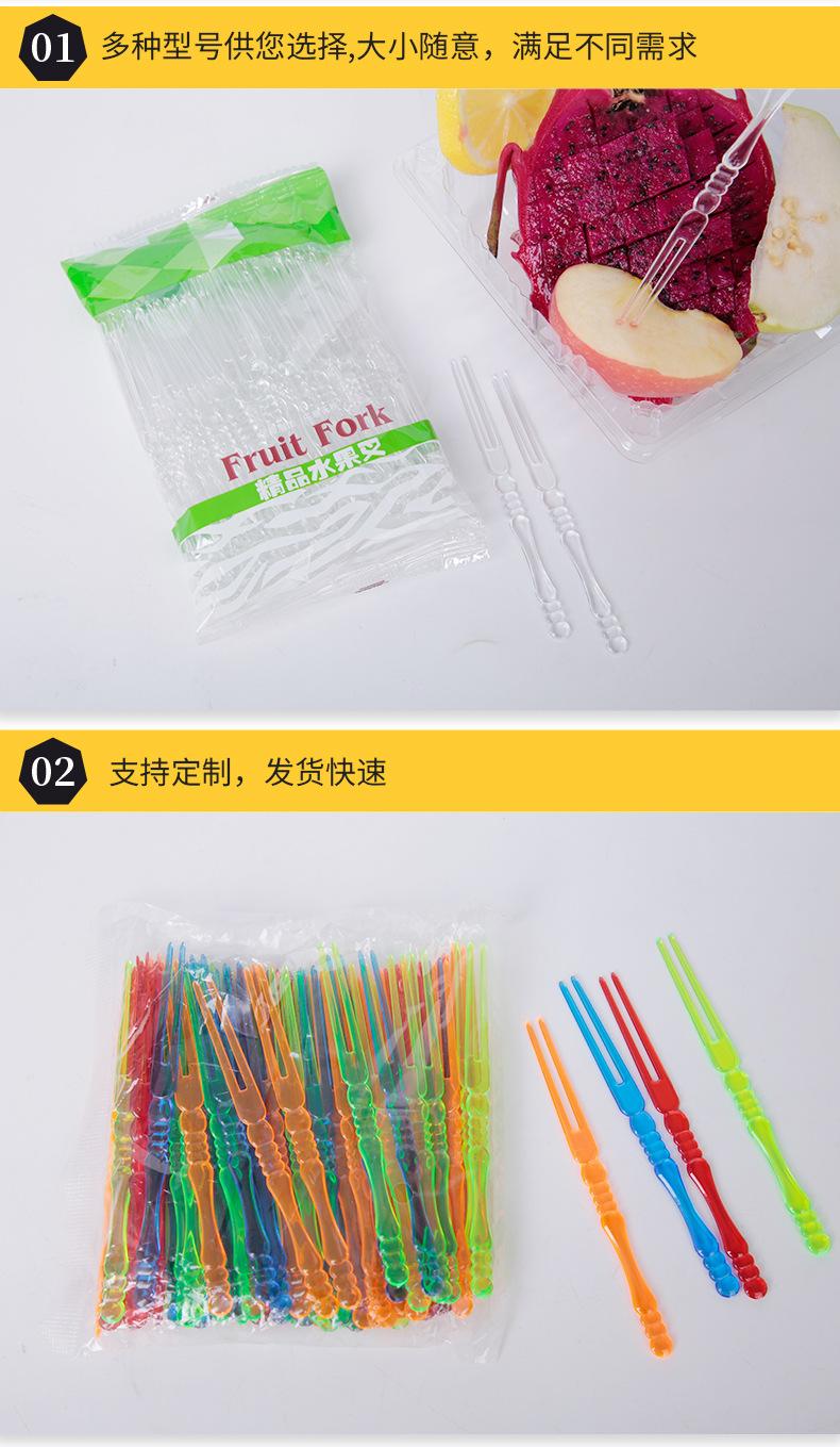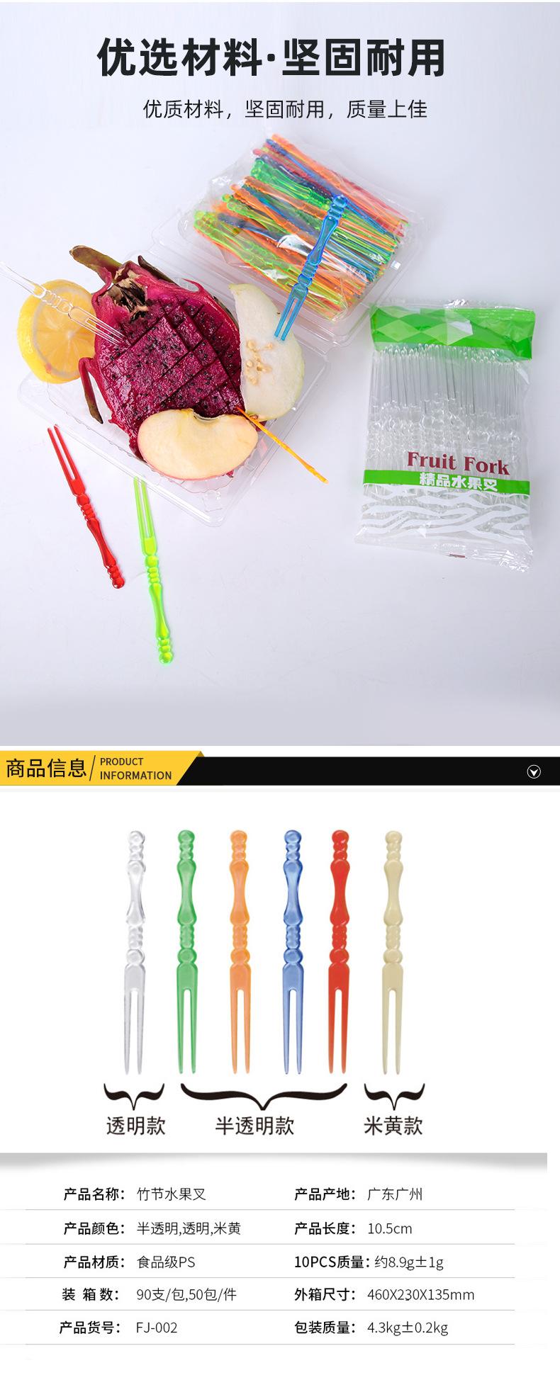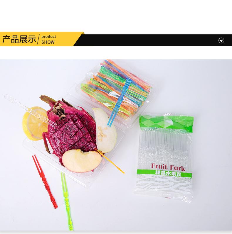 Tenedor de fruta de plástico desechable KTV, tenedor de bambú, tenedor de fruta transparente de dos dientes, tenedor de pastel de palito de fruta