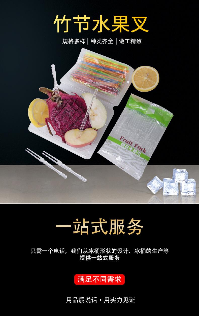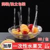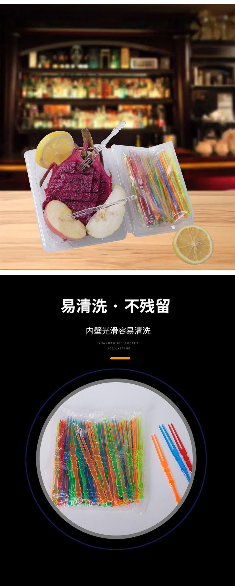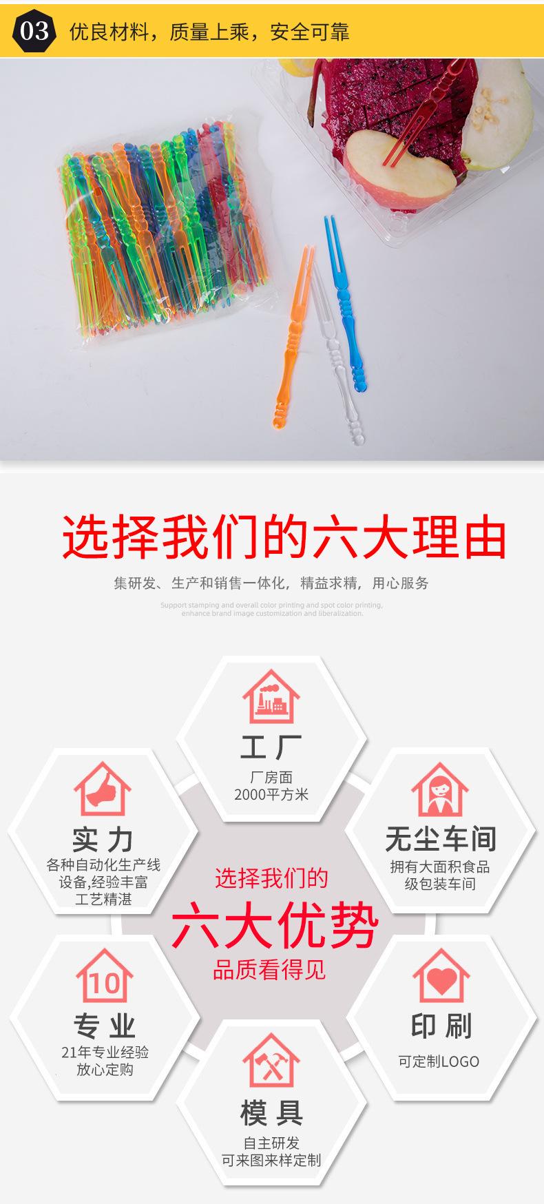 Tenedor de fruta de plástico desechable KTV, tenedor de bambú, tenedor de fruta transparente de dos dientes, tenedor de pastel de palito de fruta
