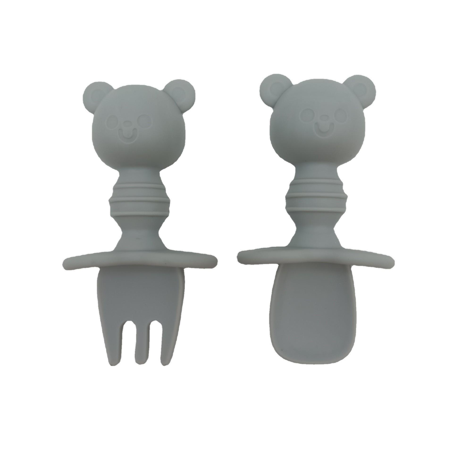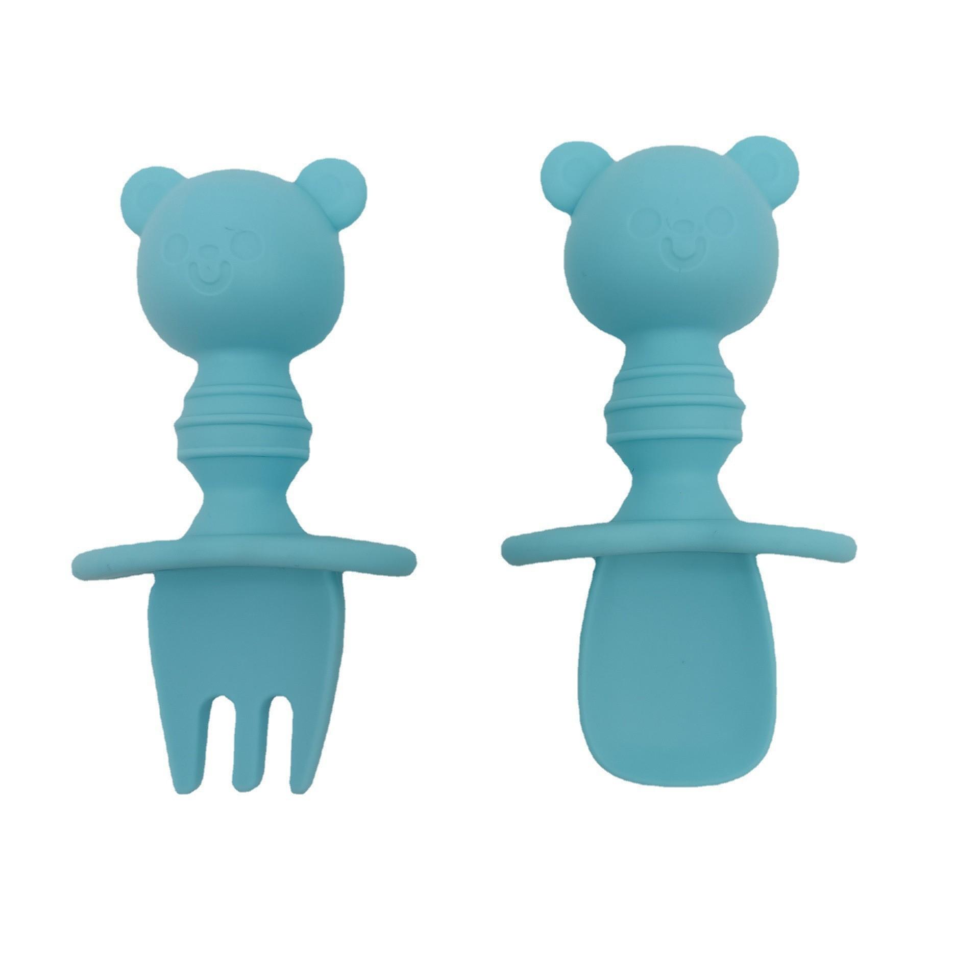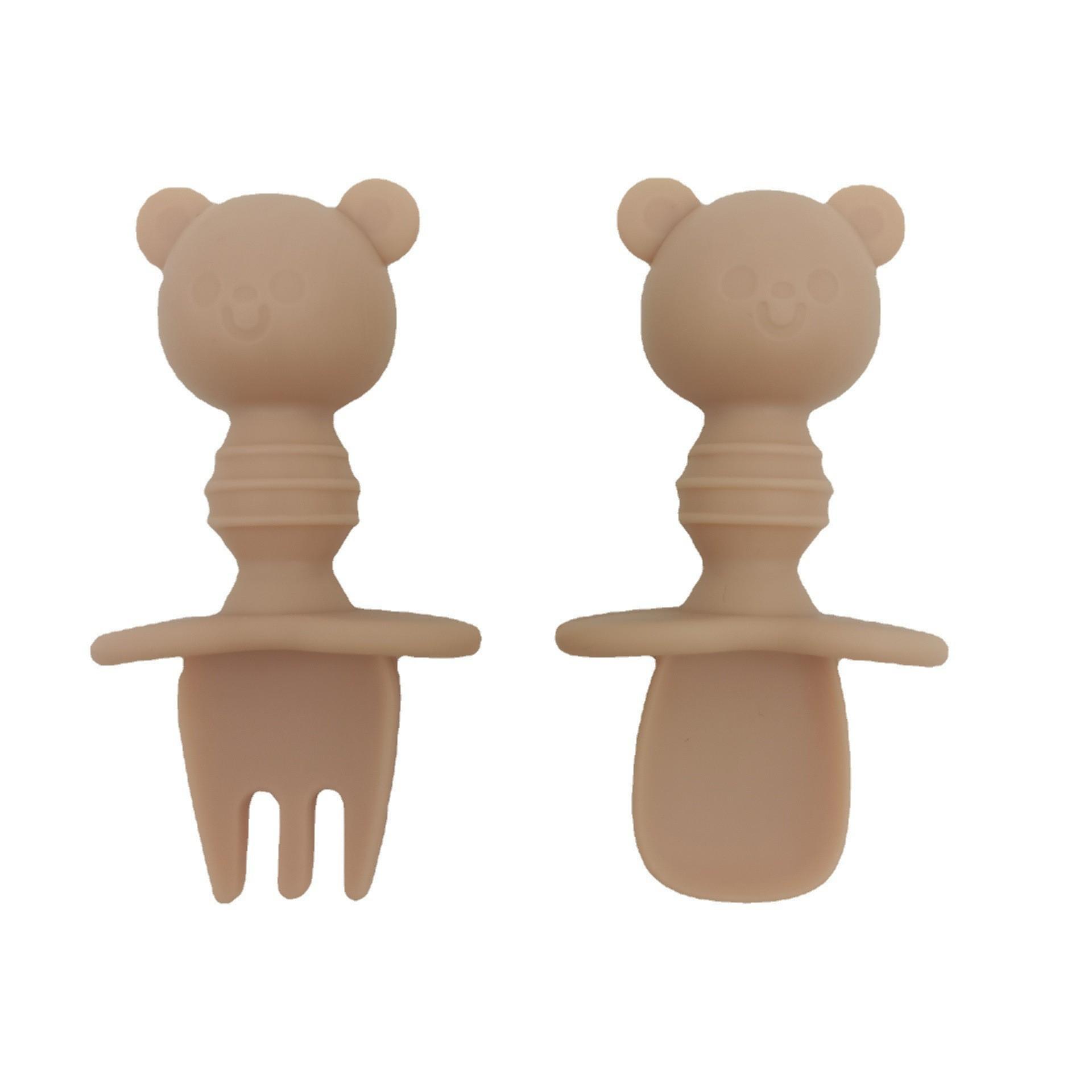 nombre del producto: | Cuchara y Tenedor de Silicona para Bebé con Forma de Oso |