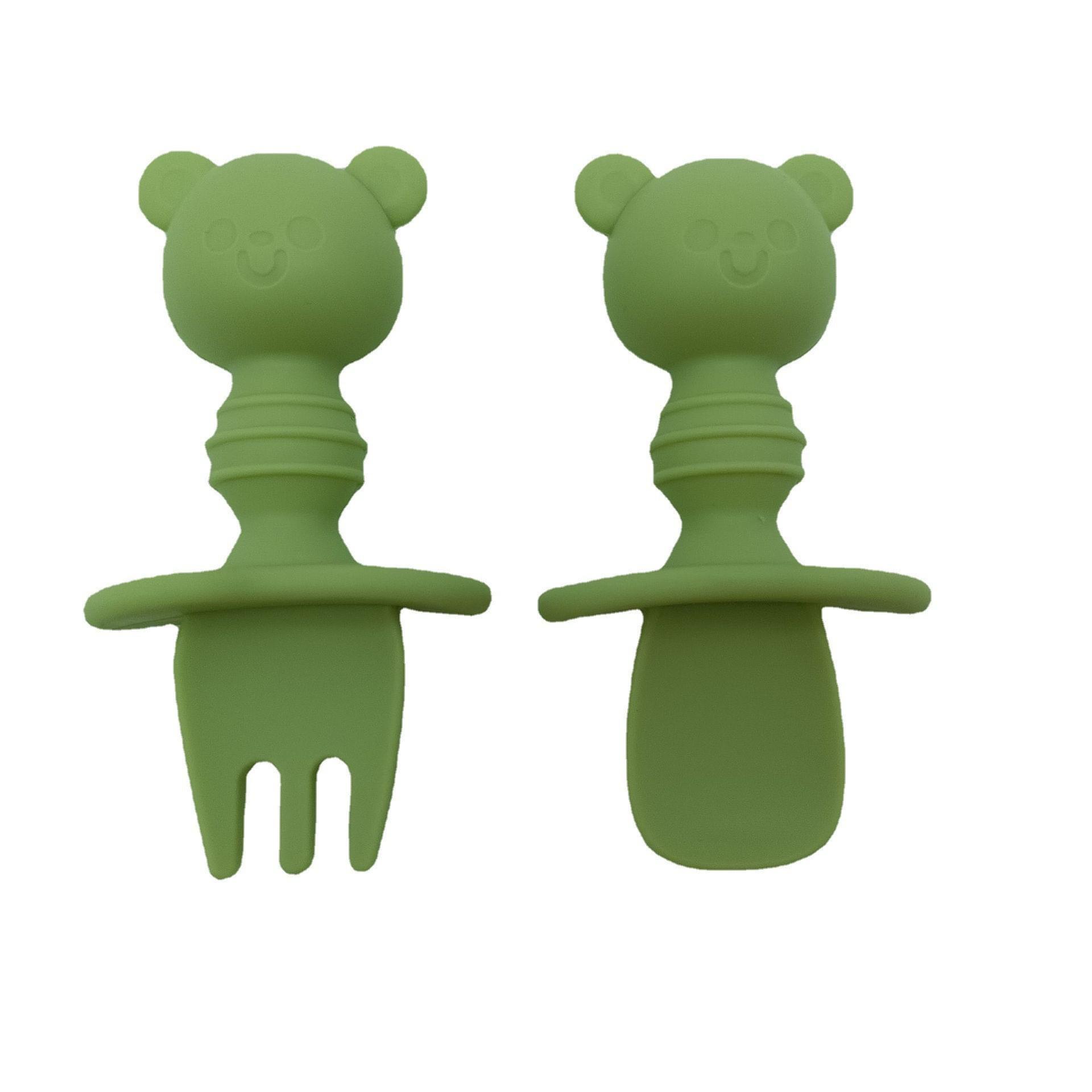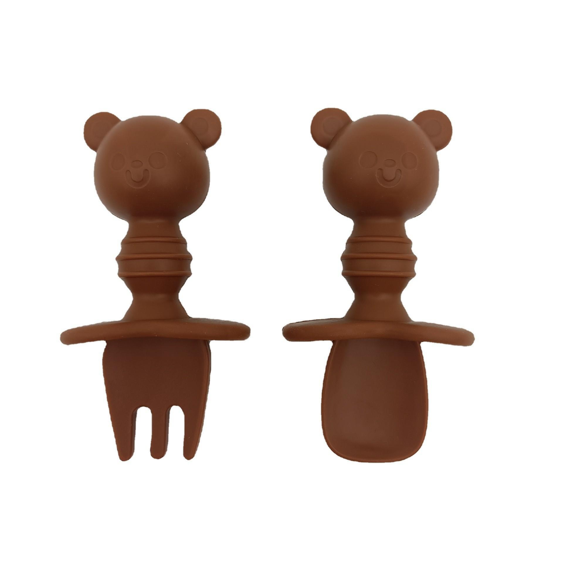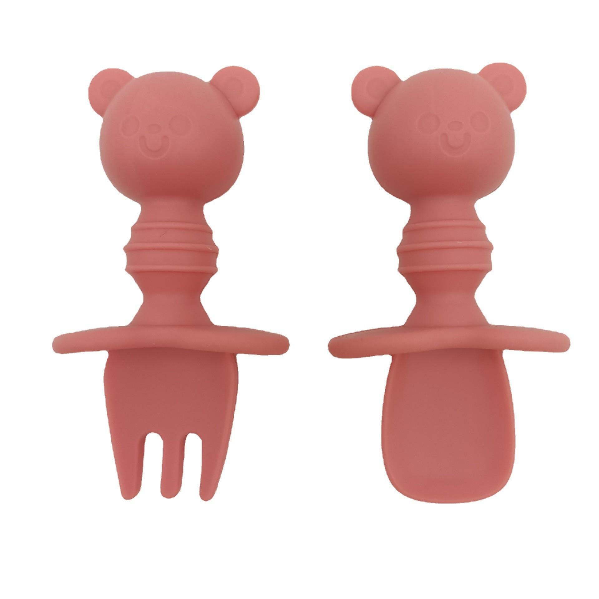 nombre del producto: | Cuchara y Tenedor de Silicona para Bebé con Forma de Oso |