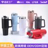 Termo portátil de acero inoxidable de gran capacidad para coche, taza de 40 oz, con asa, pajita, para café, protección contra el frío, para hielo