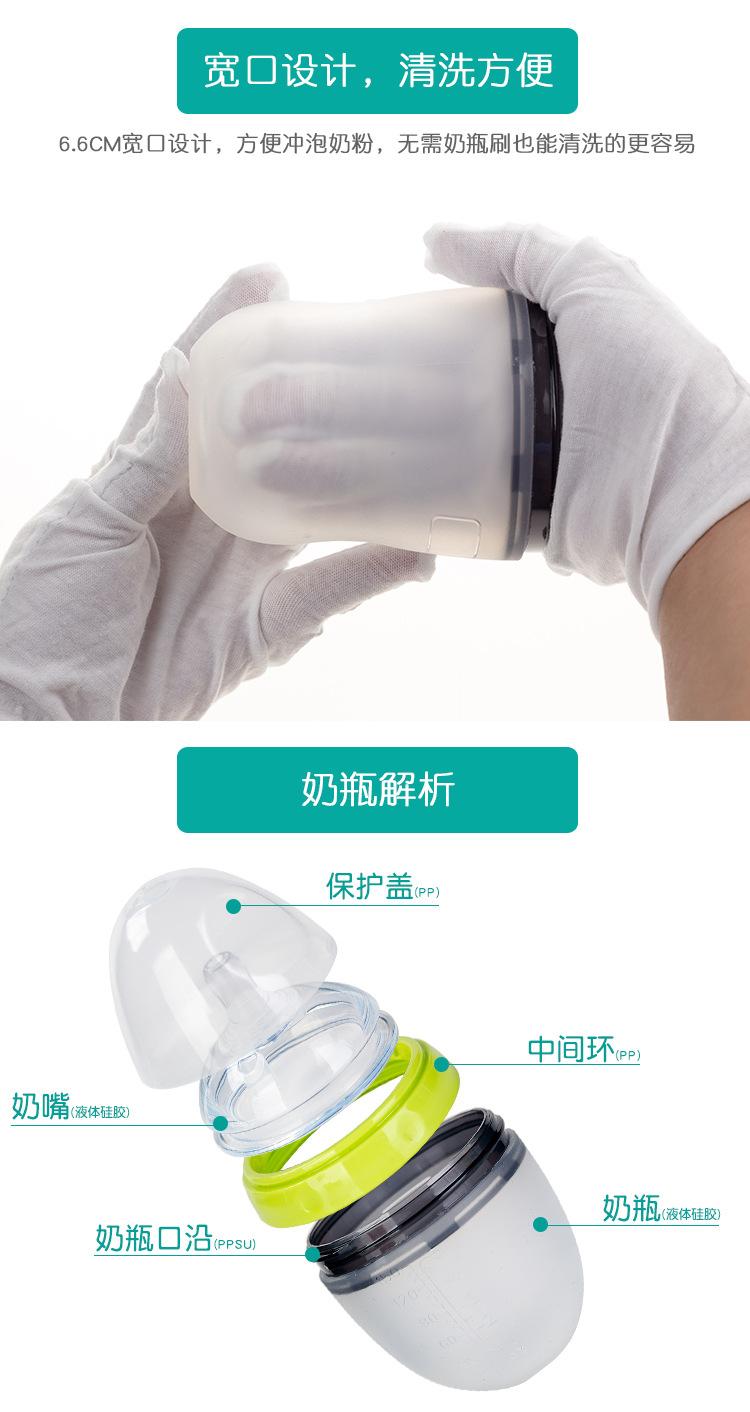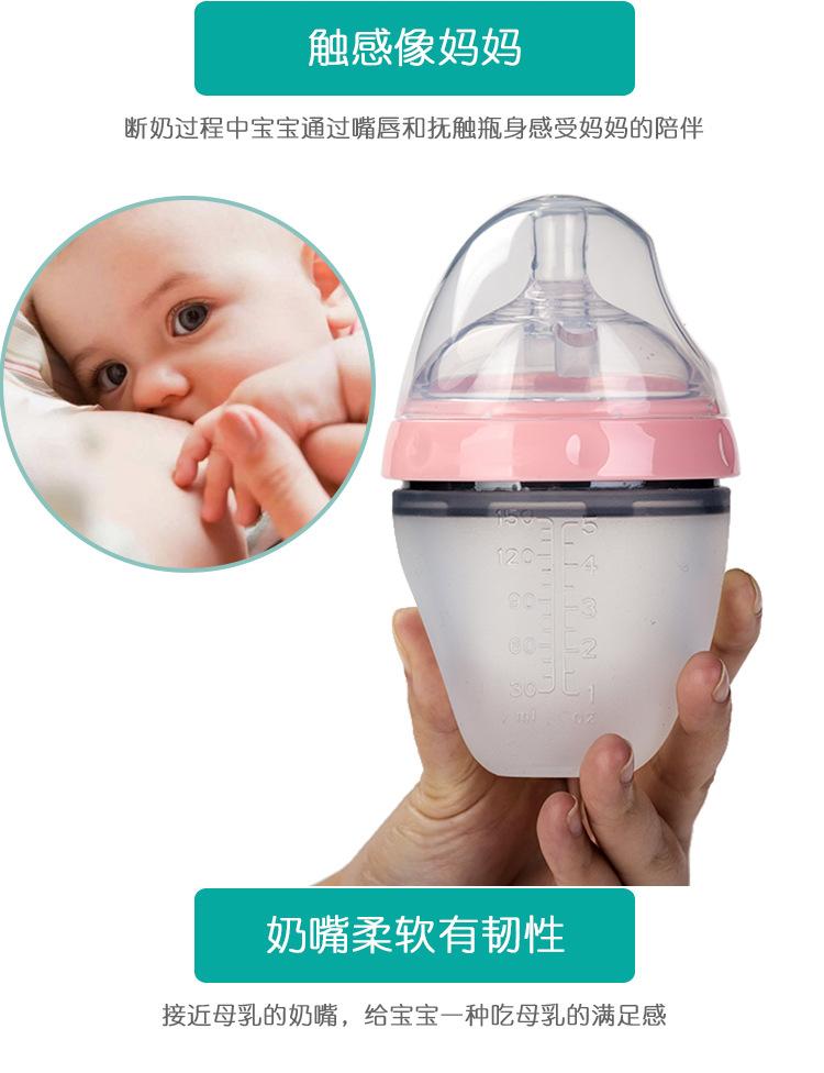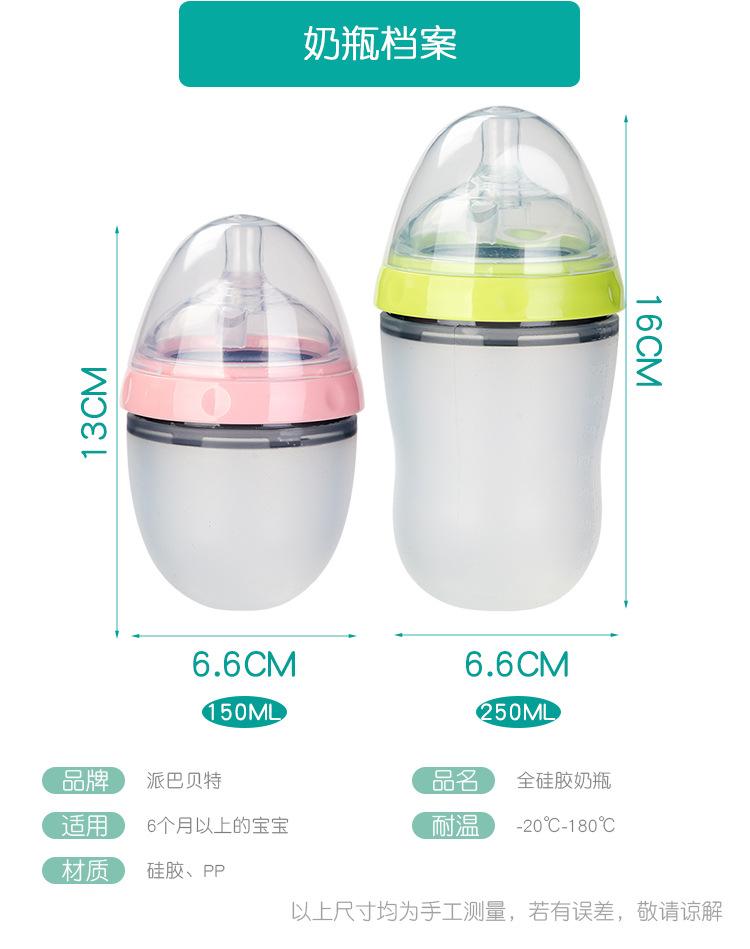 Biberón de silicona de imitación de leche materna de boca ancha Pabet, biberón blando para alimentación de bebés, 150/250 ml