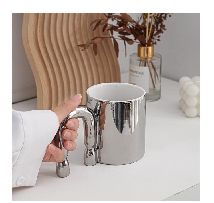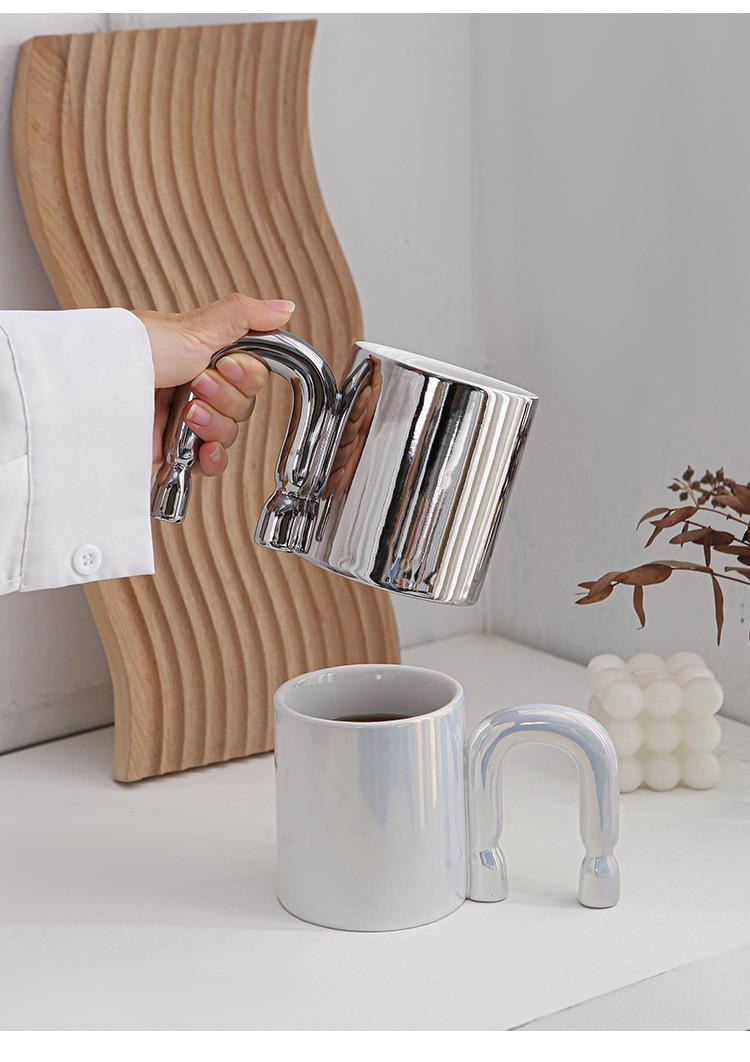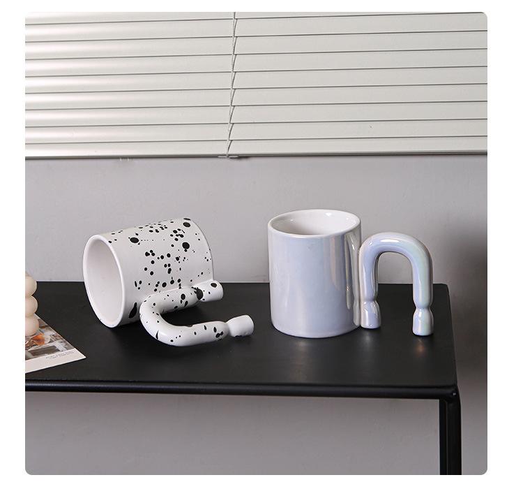 Taza de cerámica estilo ins, diseño creativo, taza con asa para puerta, color de alta calidad, juego de taza de agua para mujer, linda taza de café