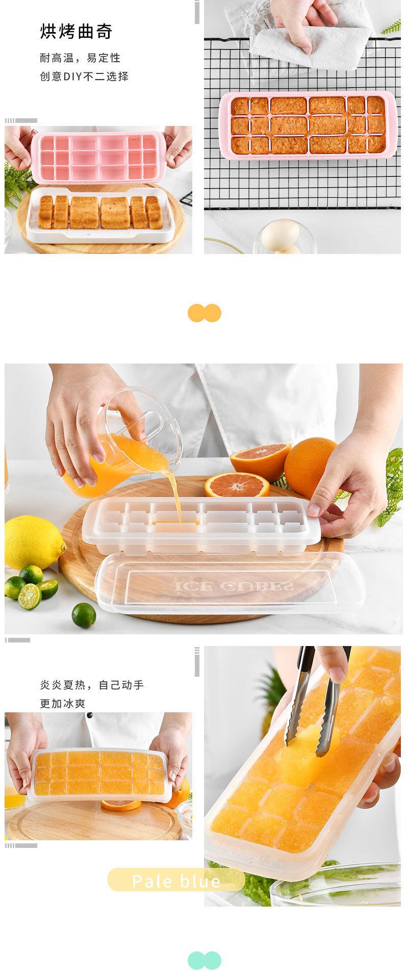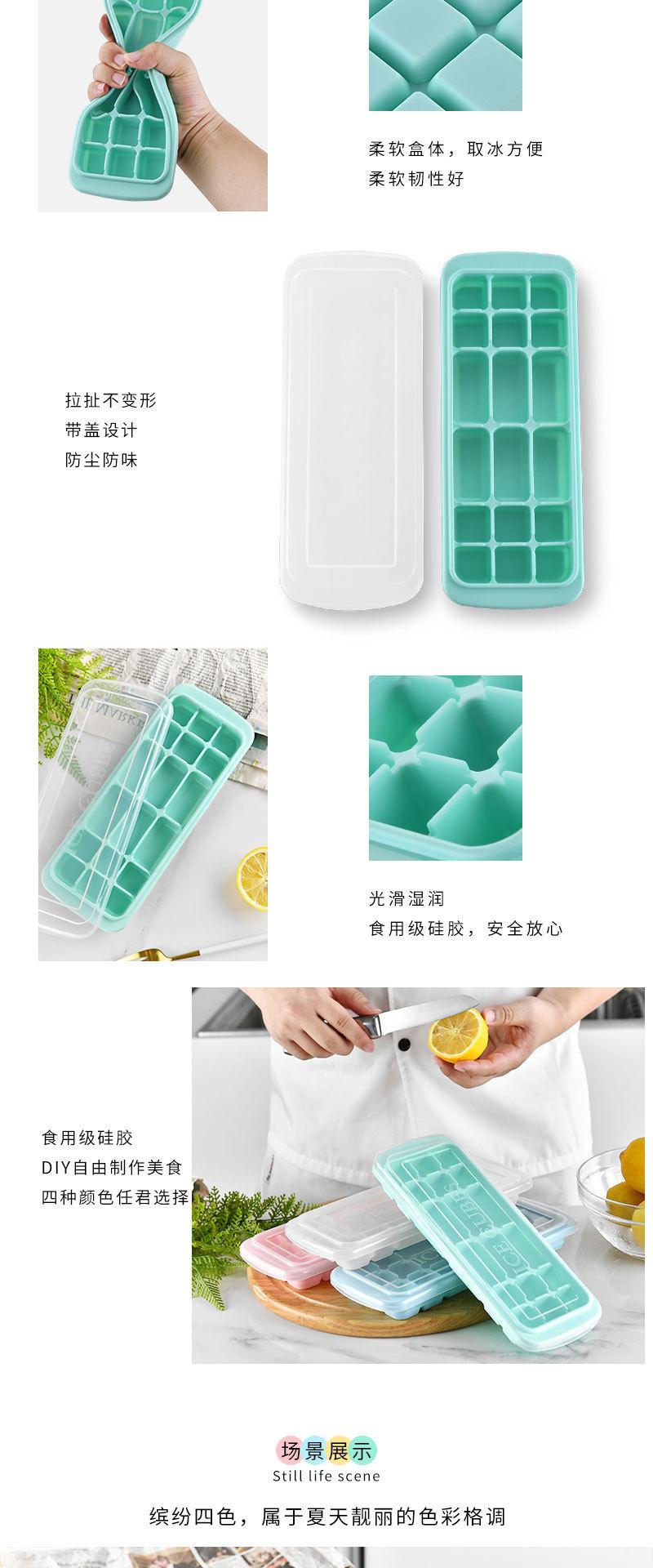 Bandeja de hielo de silicona de grado alimenticio con 18 rejillas, molde rectangular para cubitos de hielo, molde para hielo con tapa, molde para bandeja de hielo para refrigerador