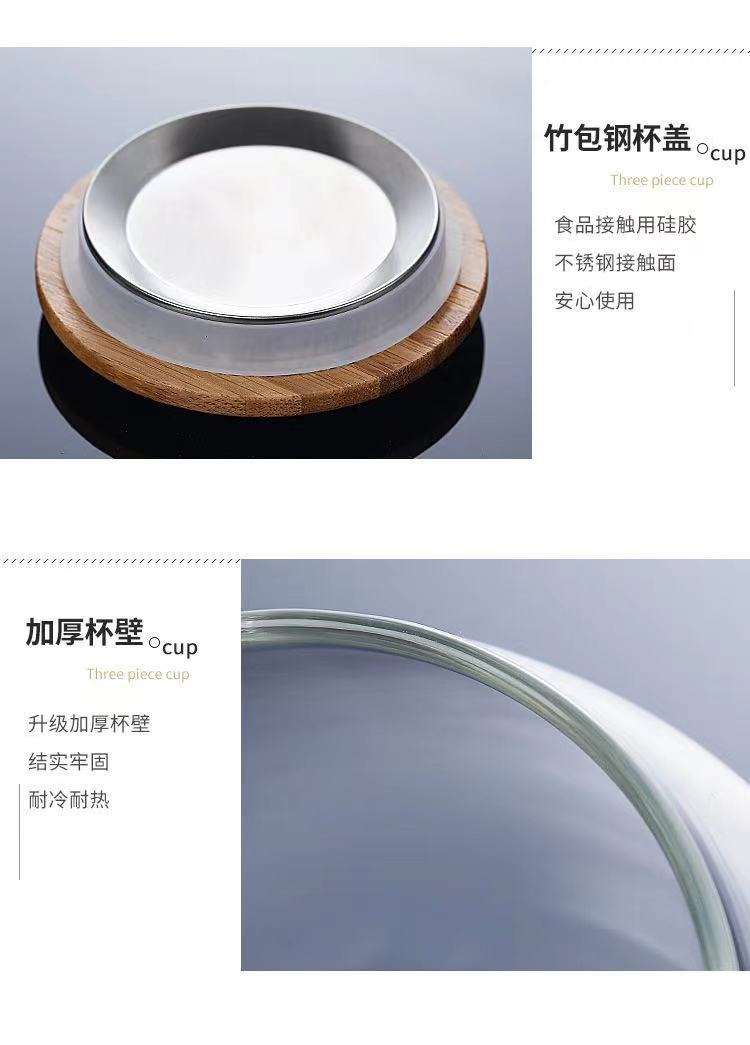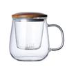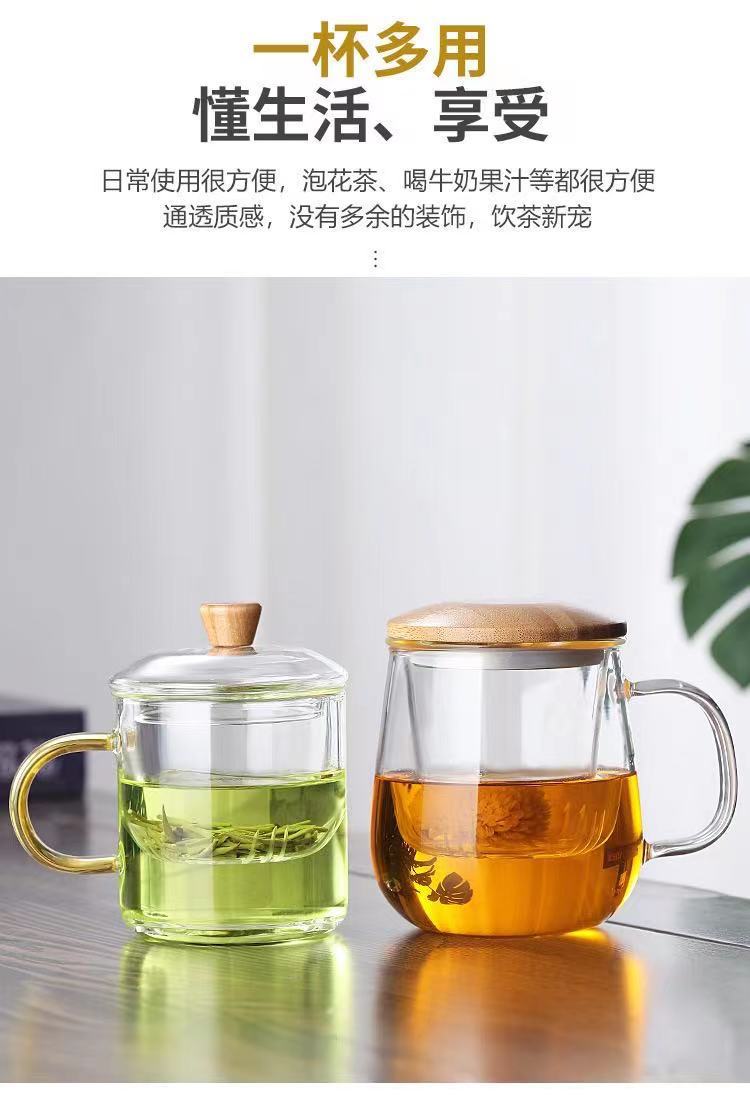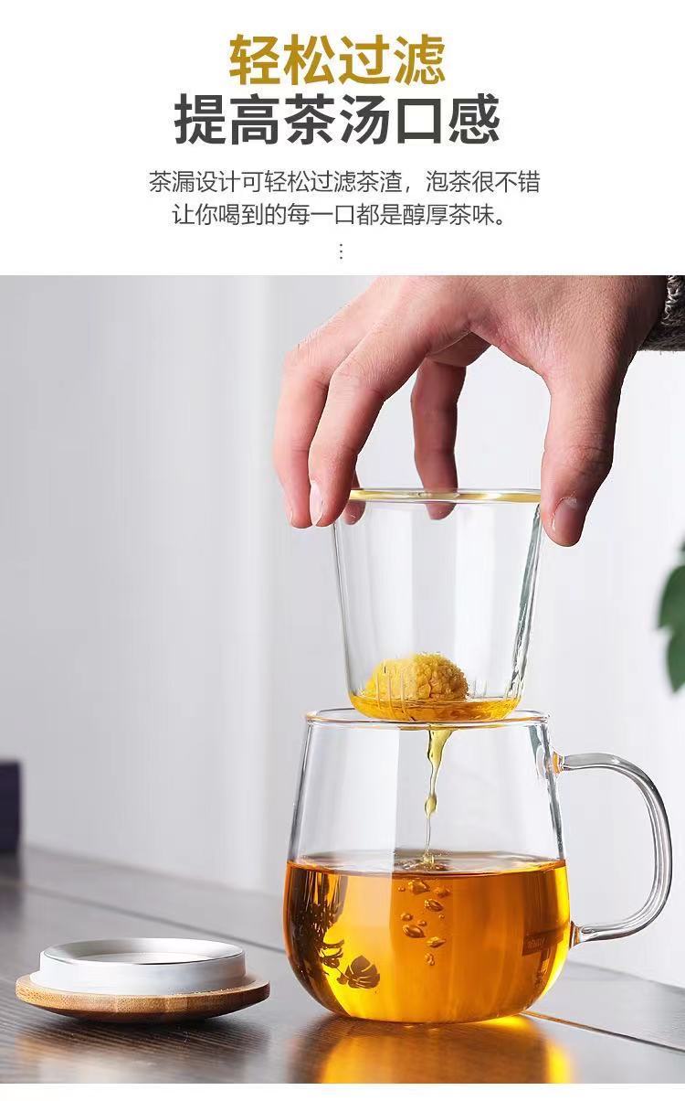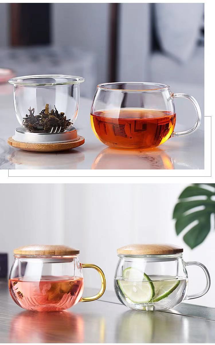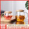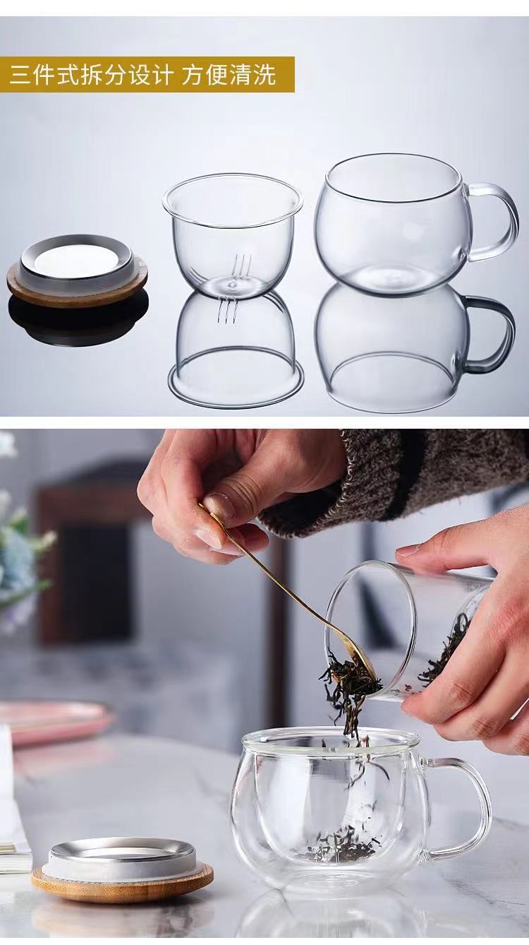 Taza de Vidrio Grueso de Tres Piezas con Tapa y Asa de Madera, Taza para Separación de Té y Agua para Oficina, Taza para Filtrar Agua Resistente a Altas Temperaturas, Resistente al Calor