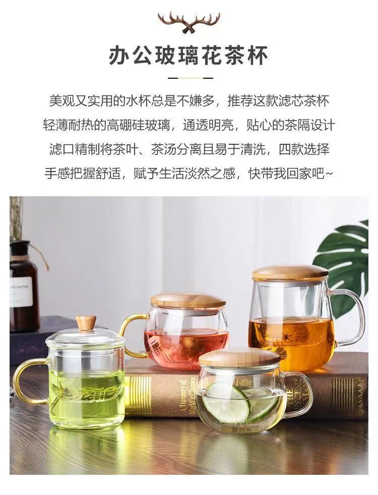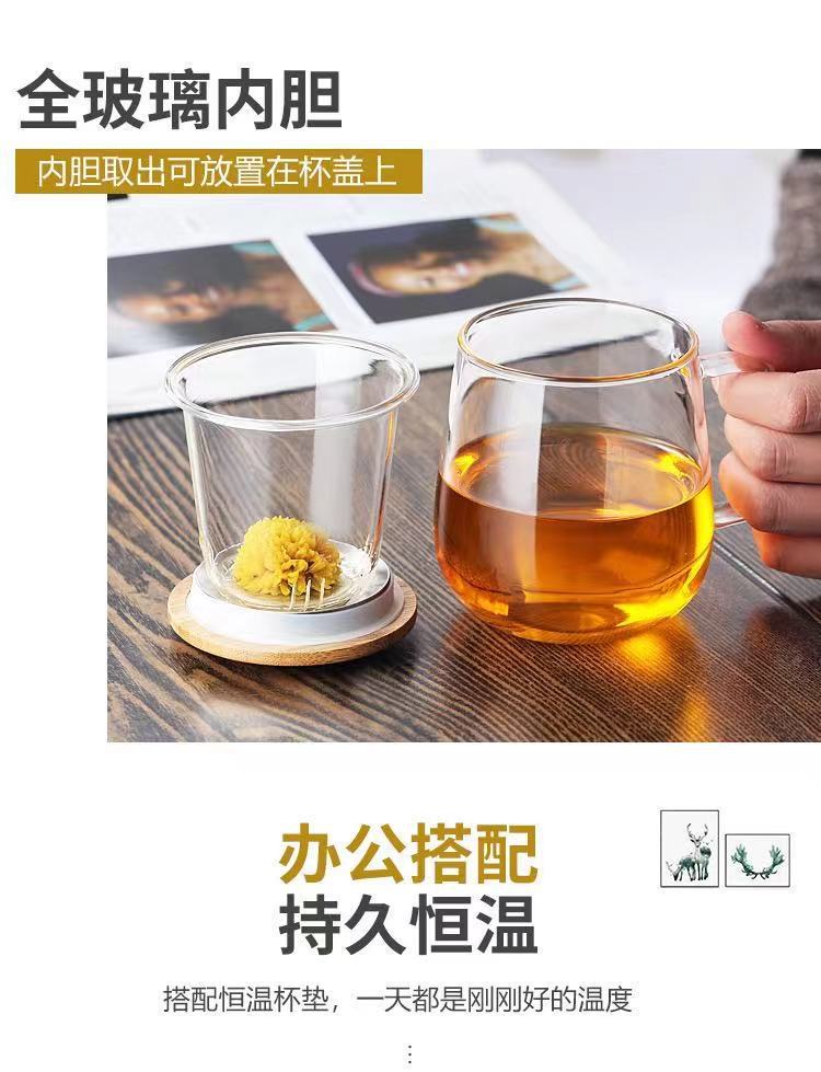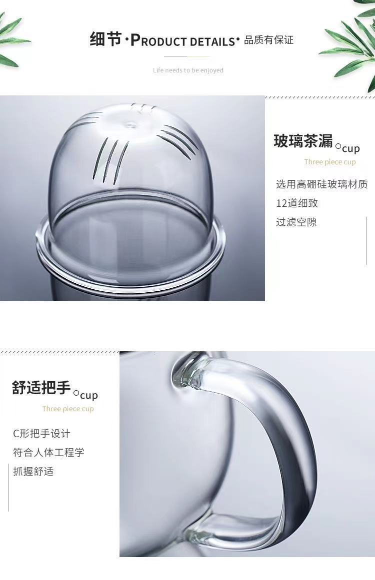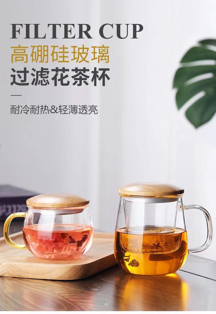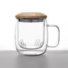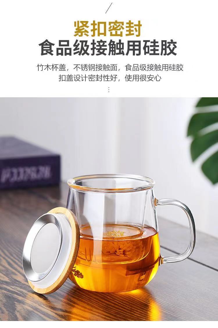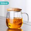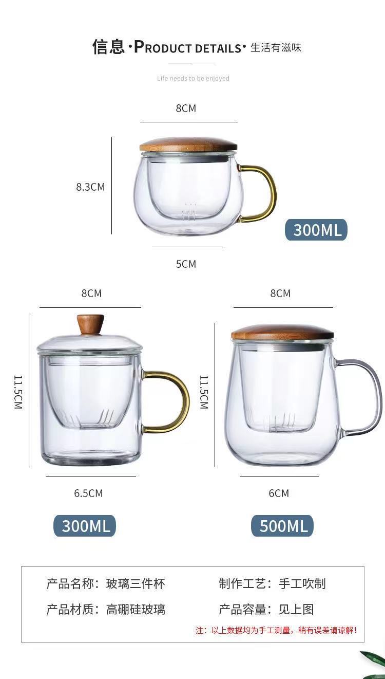 Taza de Vidrio Grueso de Tres Piezas con Tapa y Asa de Madera, Taza para Separación de Té y Agua para Oficina, Taza para Filtrar Agua Resistente a Altas Temperaturas, Resistente al Calor