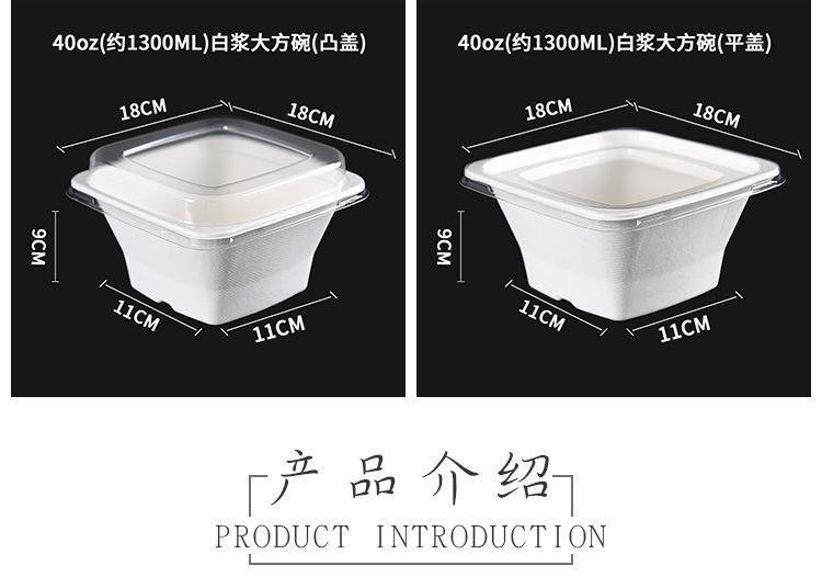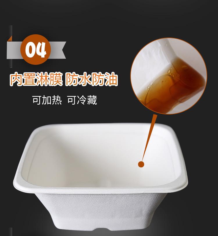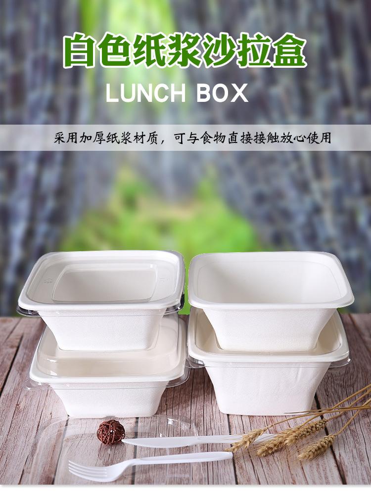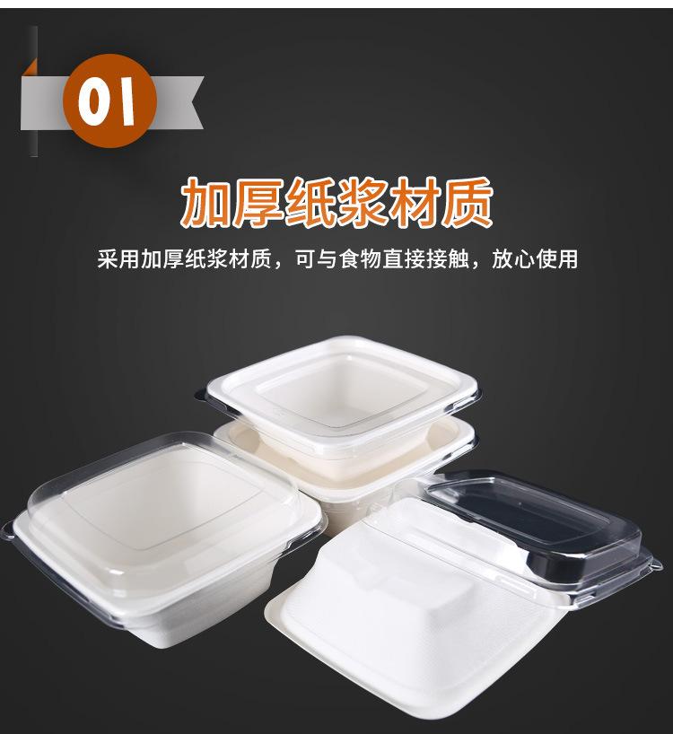 Caja de embalaje, lonchera desechable de pulpa, ensaladera cuadrada ligera, lonchera para llevar, lonchera, tazón de caña de azúcar degradable