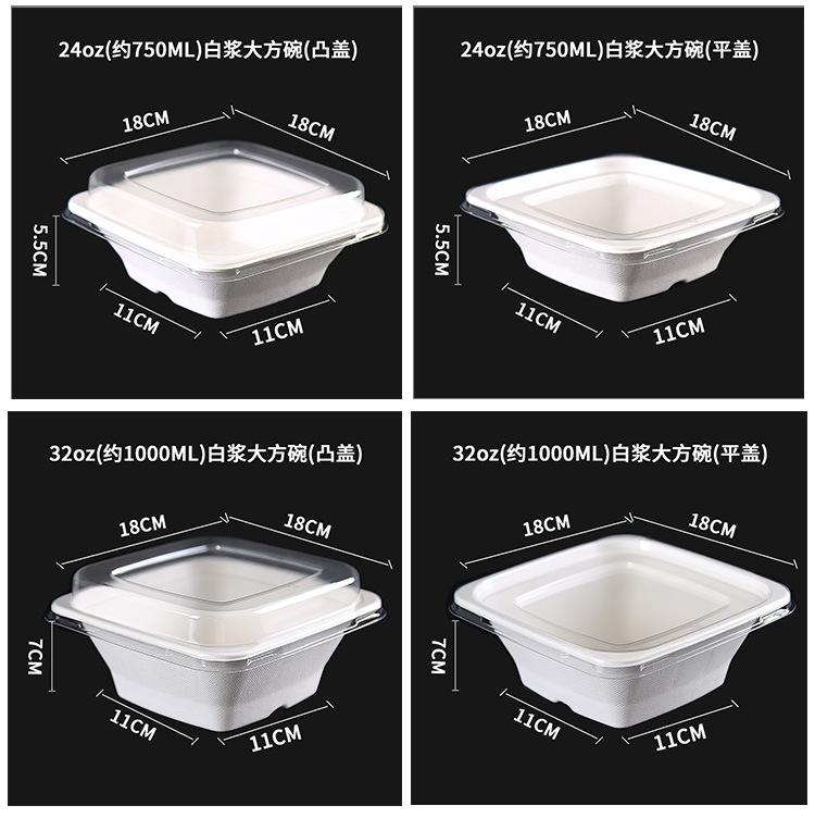 24oz white pulp generous Bowl-with convex lid, 24oz white pulp Bowl-with flat lid, 32oz white pulp generous Bo...