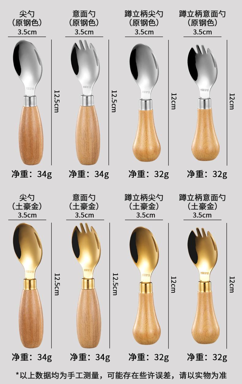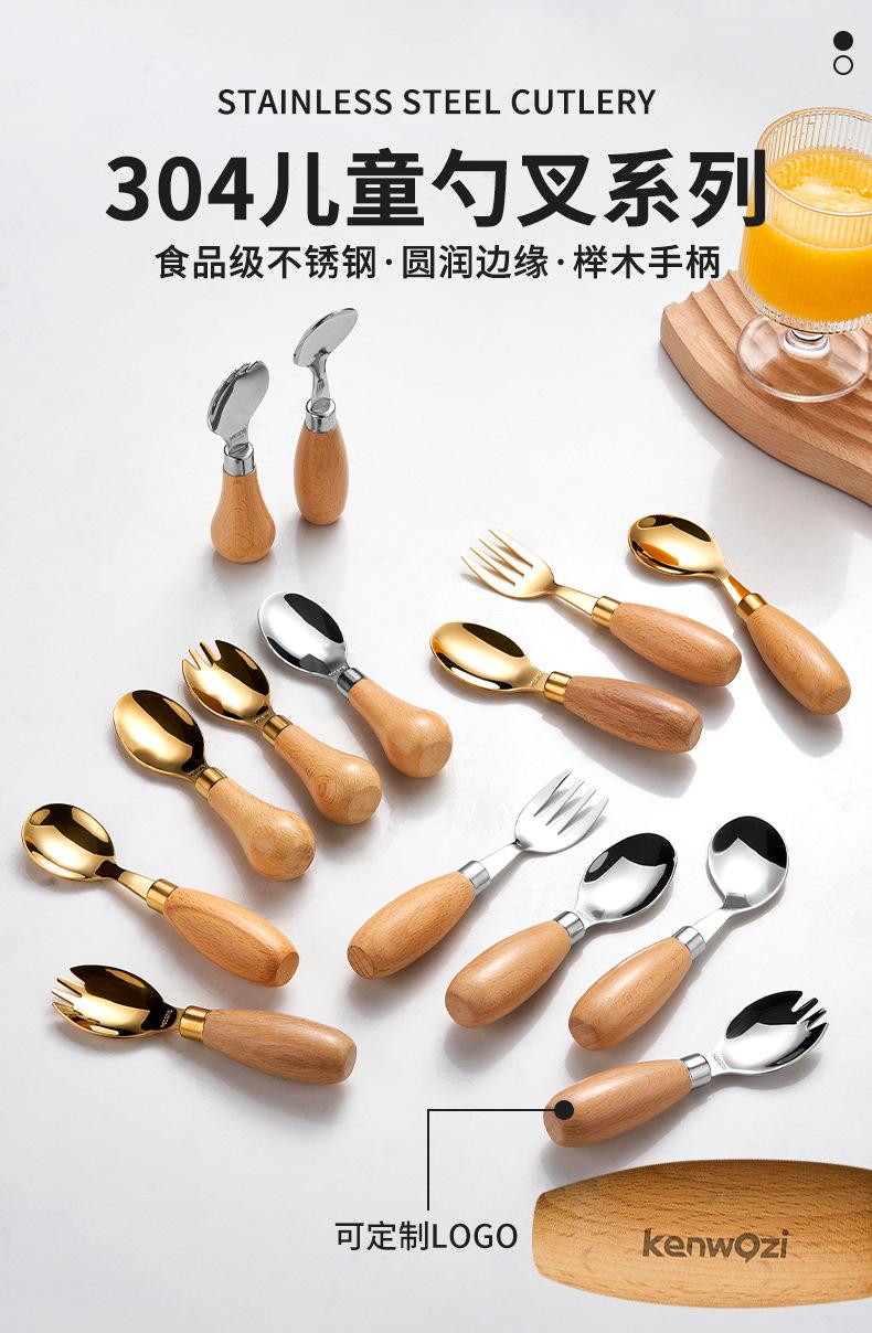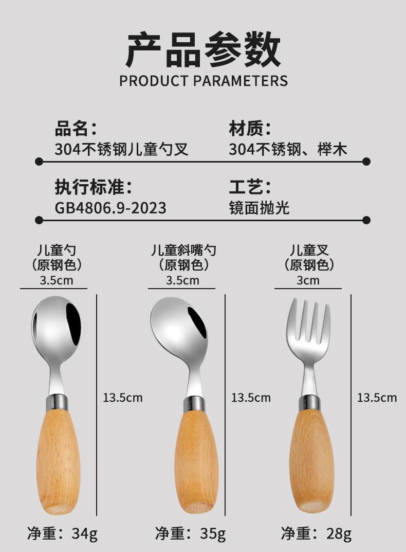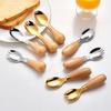 Children's spoon with beech wood handle (original steel color), Children's slanted spoon with beech wood handl...