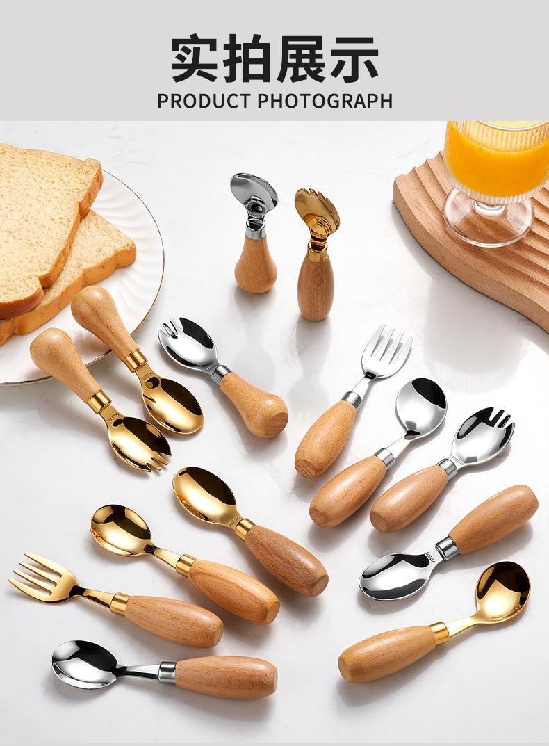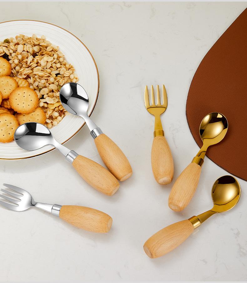 Tenedor y Cuchara de Acero Inoxidable 304 Vajilla para Alimentación Cuchara para Bebé Niños Aprenden a Comer Entrenamiento Tenedor para Bebé Nuevo Complemento Alimenticio