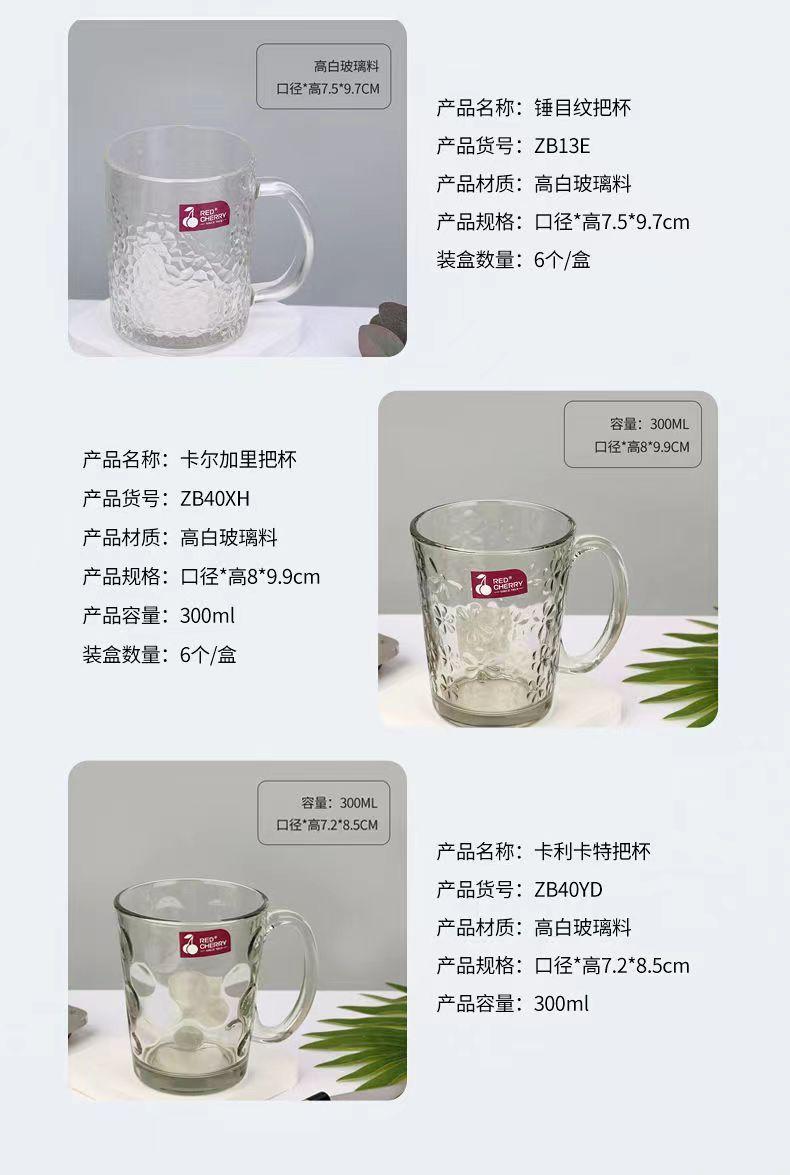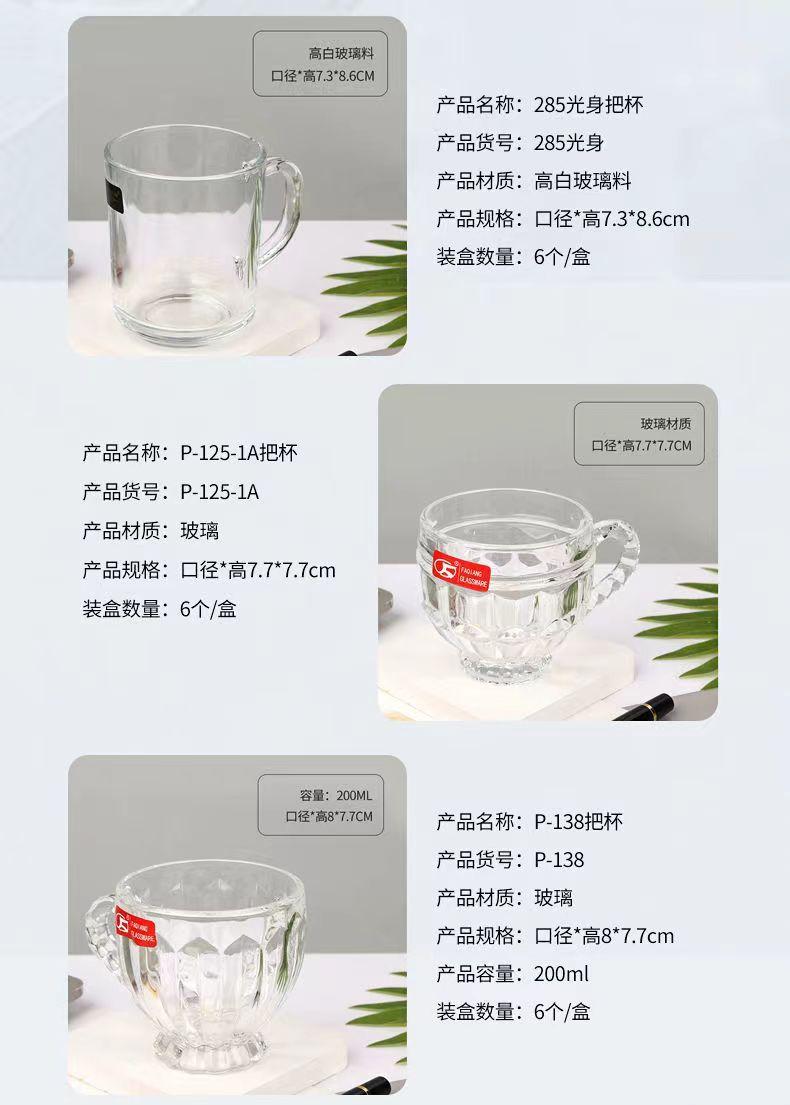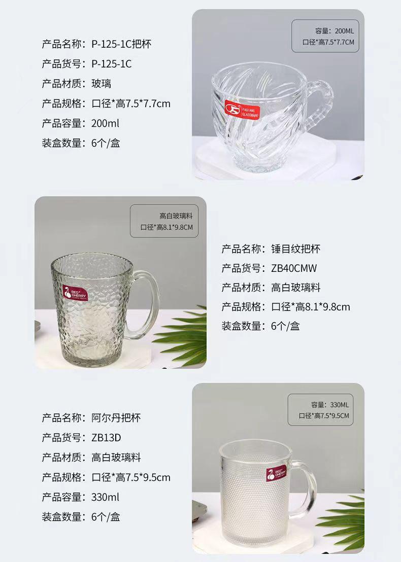 ZBC45 glass cup (72/box), ZB22 glass handle Cup (72/box), 285 bare body Cup (72/box), P-125-1A handle Cup (72/...
