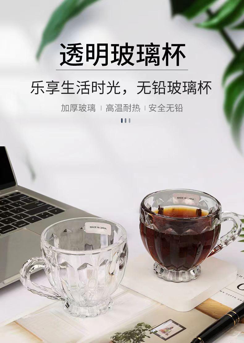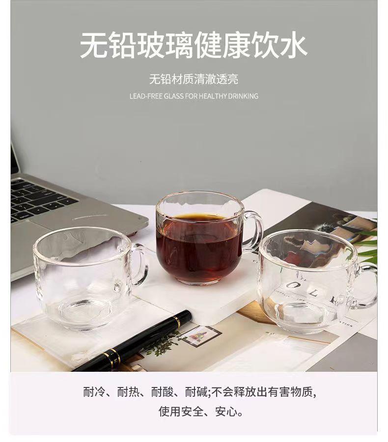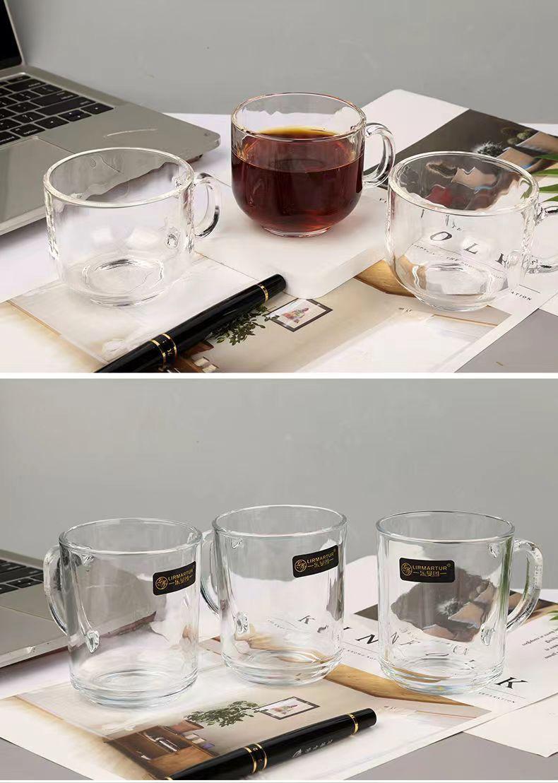 Una variedad de tazas de té pequeñas de vidrio transparente para el hogar, tazas de vino, tazas de mano, tazas de leche para desayuno con asa, tazas al por mayor