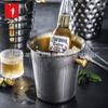 Cubo de Hielo de Acero Inoxidable 304 Cubo de Champán Cubo de Cerveza Cubo de Vino Aislamiento Doble Capa Recto Bar KTV Portátil con Tapa