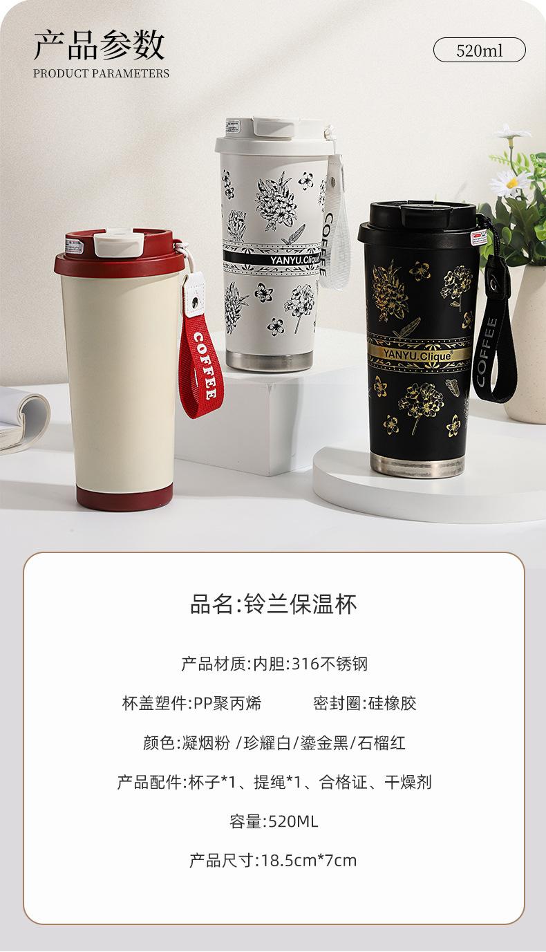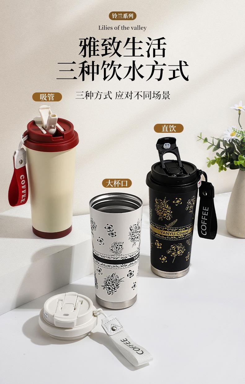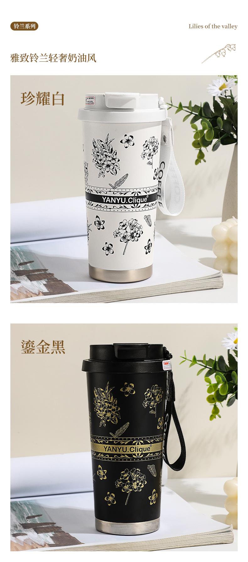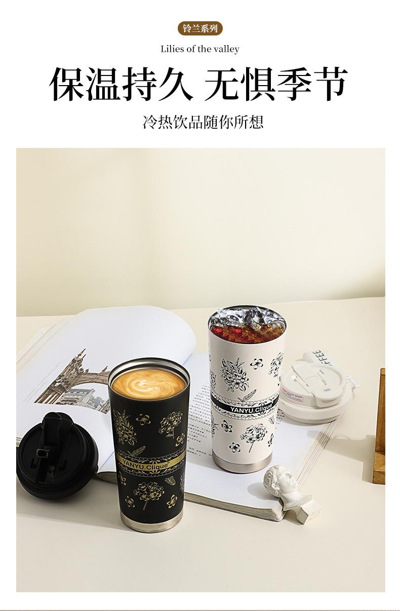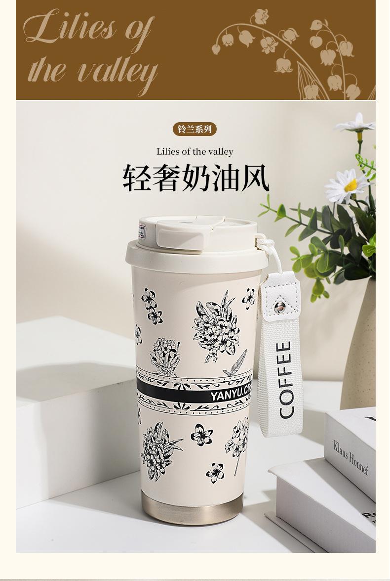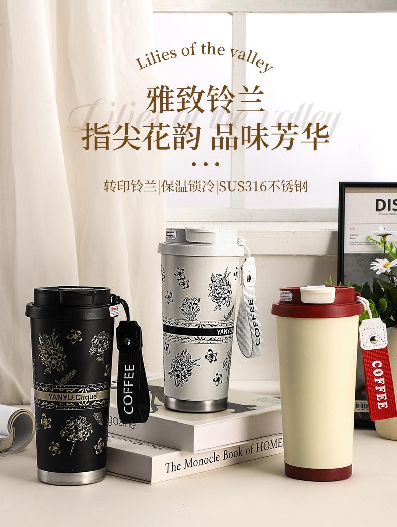 Taza de Café de Doble Bebida de Gran Capacidad Simple Lirio de los Valles Vaso Termo Acero Inoxidable 316 Regalo de Negocios con Logo Grabado