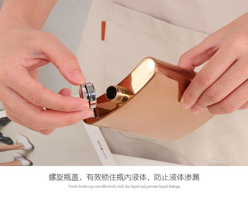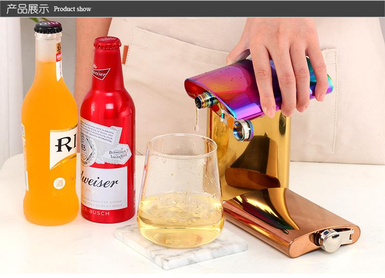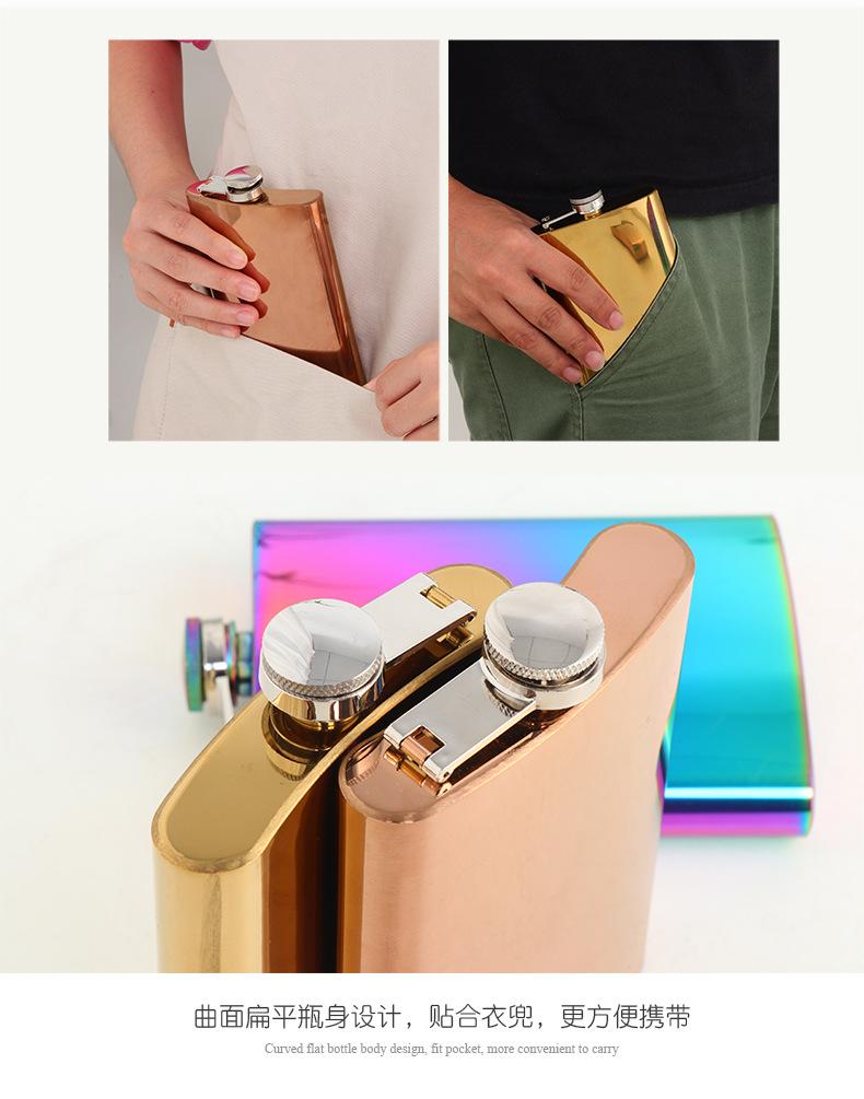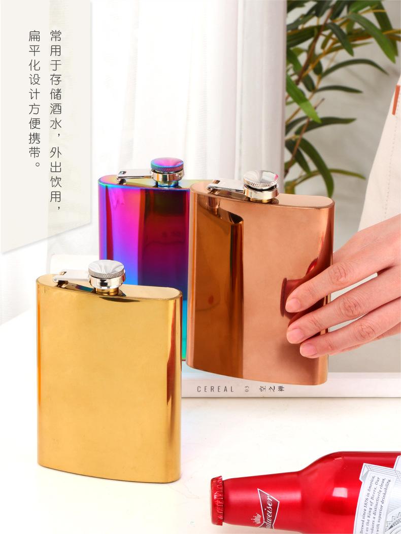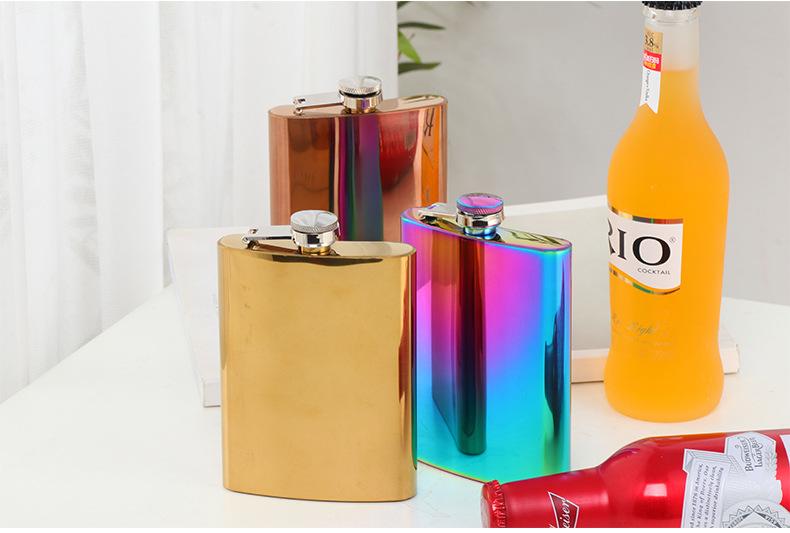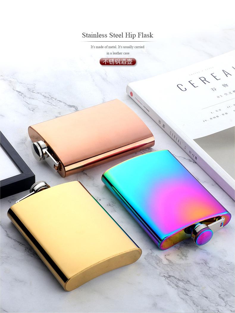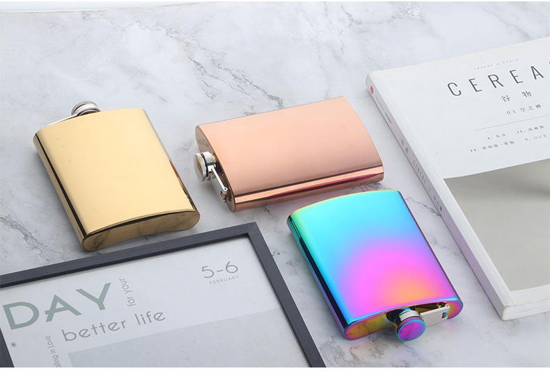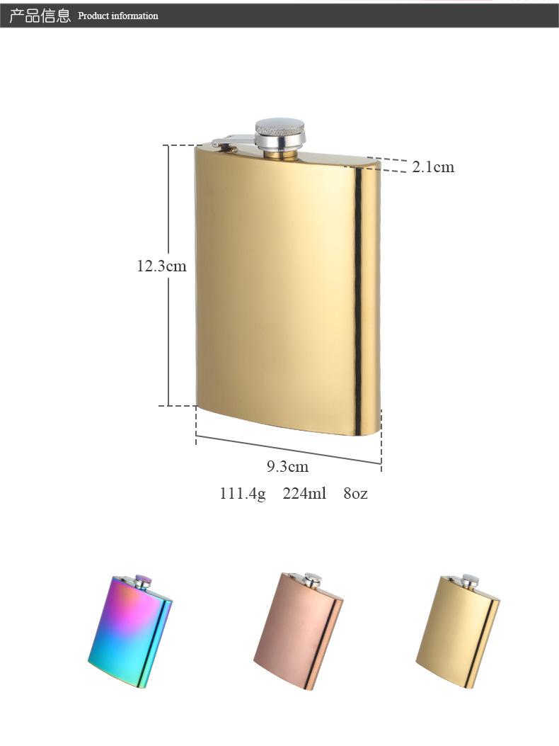 Frasco de acero inoxidable de 8 oz para acampar al aire libre, portátil, cuadrado, plano, de metal, con logotipo de color sólido
