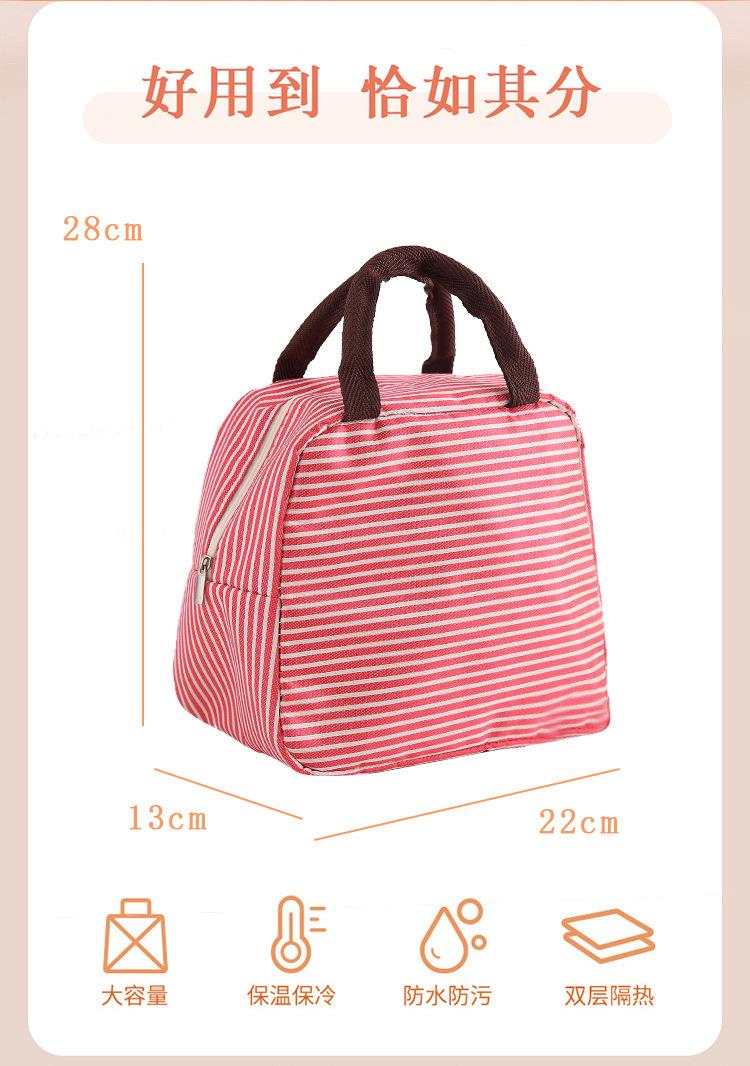 Bolsa de almuerzo a rayas Bolsa de almuerzo sencilla Bolsa de almuerzo Bolso de mano Bolsa de almacenamiento Bolsa de aislamiento Bolsa de almuerzo de lona