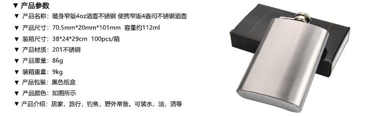 Petaca portátil para hombre, versión estrecha, de acero inoxidable de 4 oz, 110 ml, para aceite, venta al por mayor, 86 g