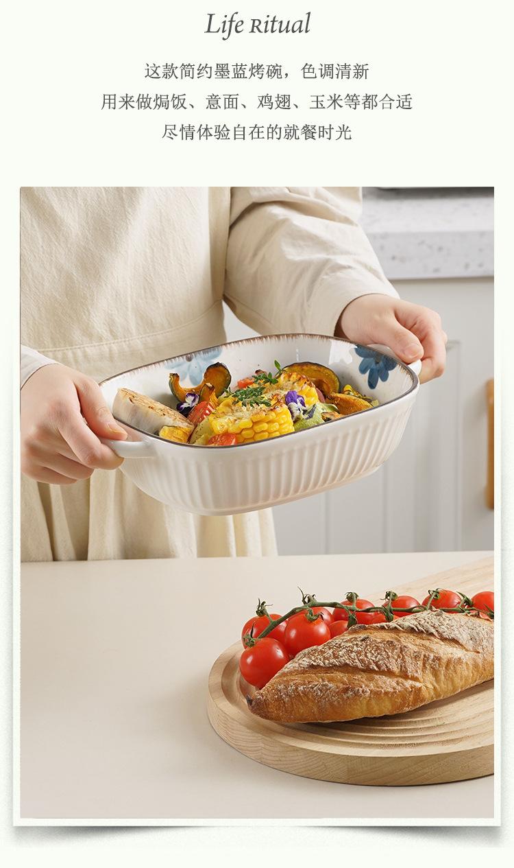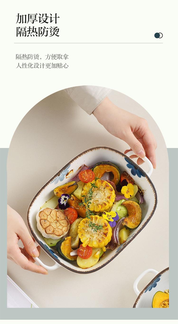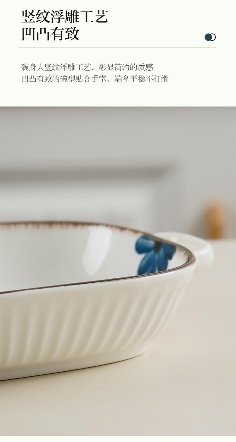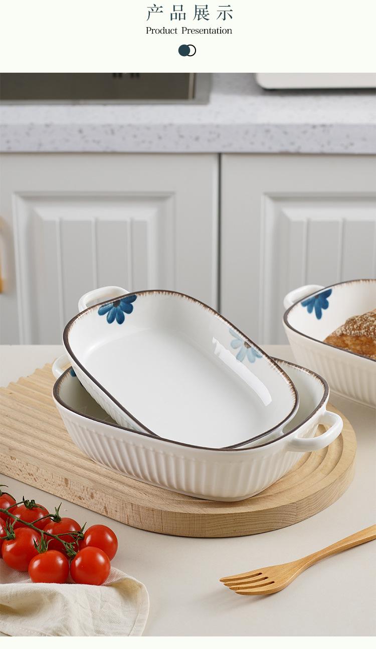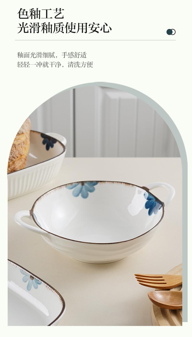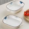 Molde para hornear de cerámica estilo japonés con flor de tinta, para uso doméstico, con dos asas, vajilla de cerámica para microondas, molde para hornear arroz, ensaladera