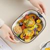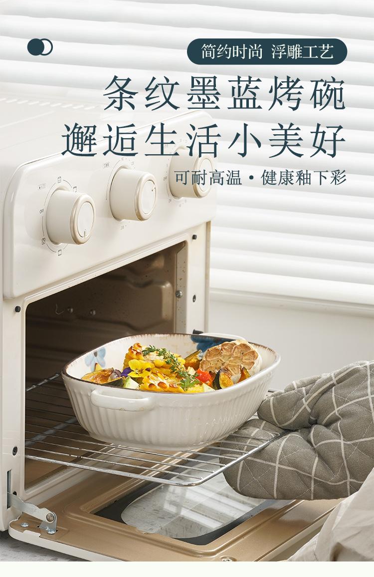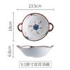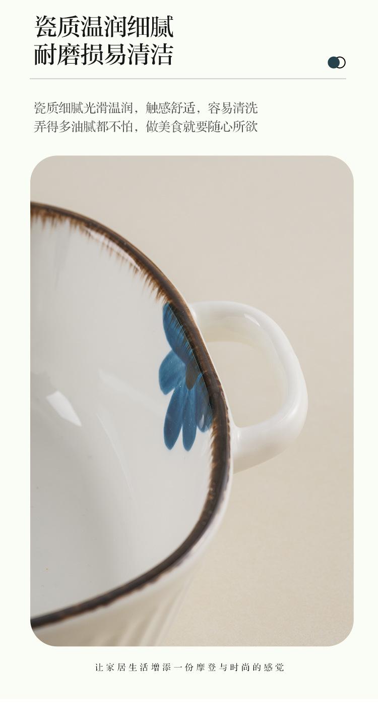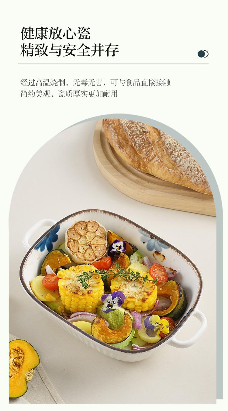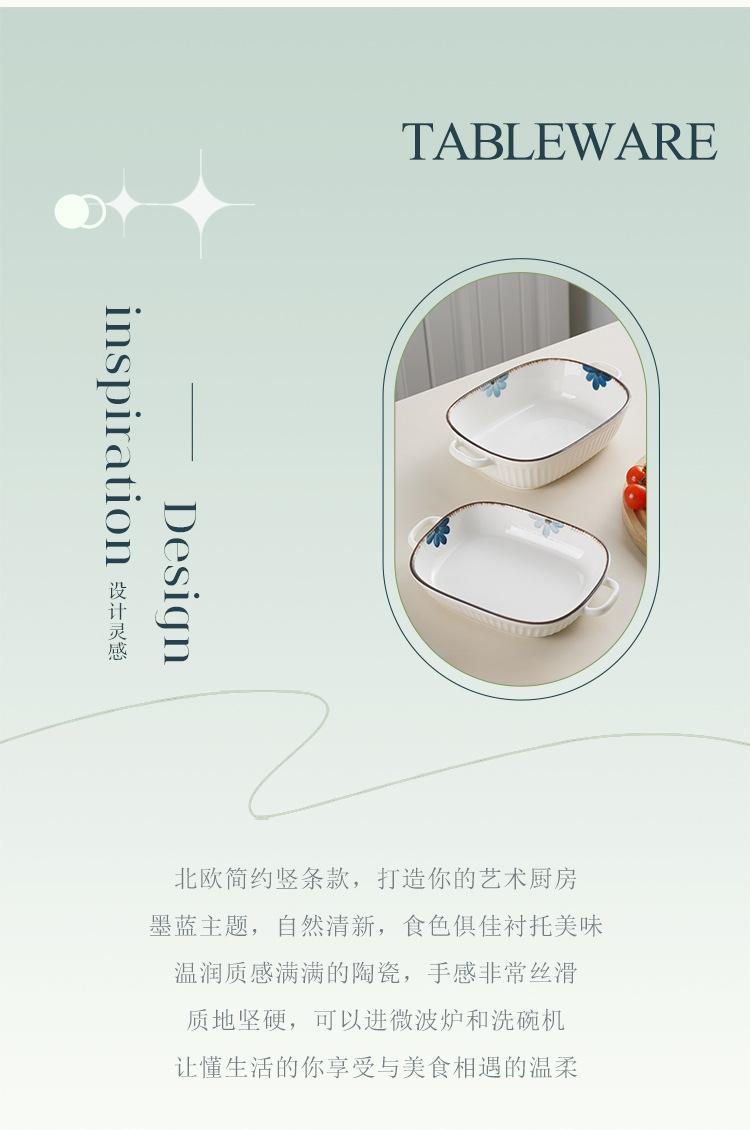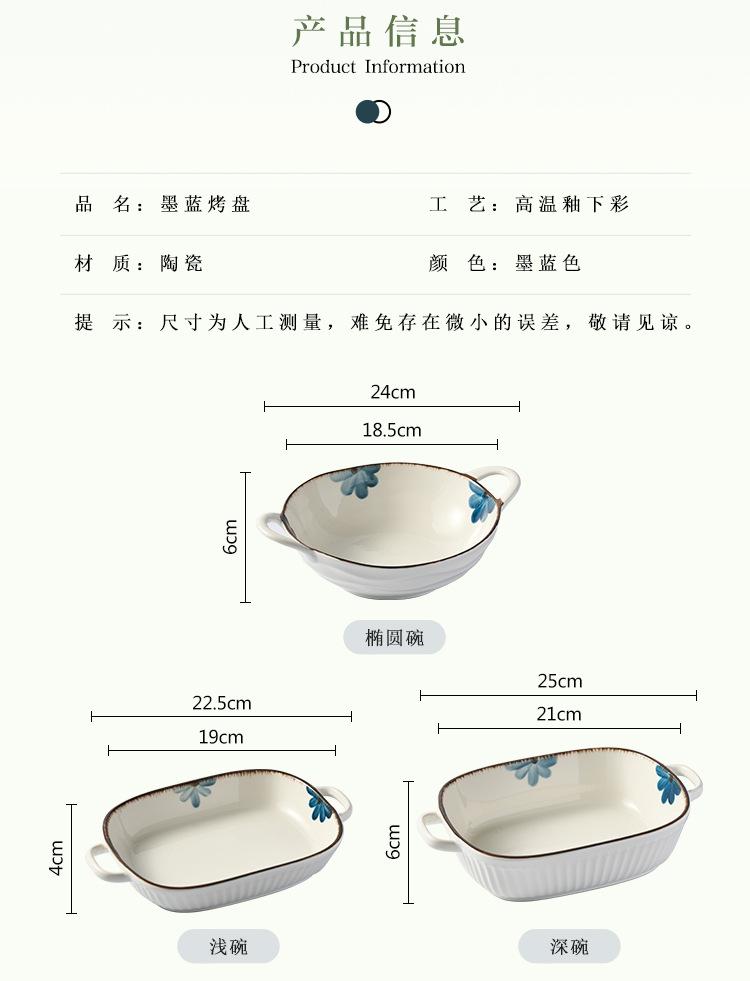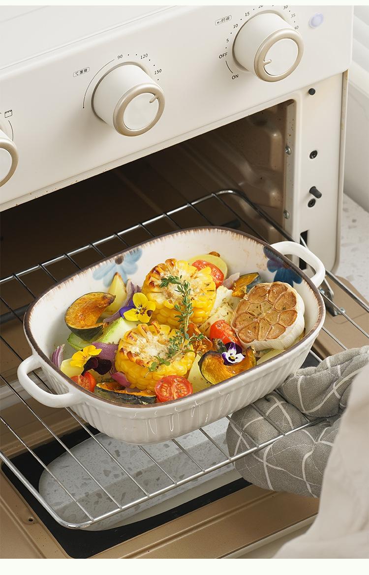Molde para hornear de cerámica estilo japonés con flor de tinta, para uso doméstico, con dos asas, vajilla de cerámica para microondas, molde para hornear arroz, ensaladera