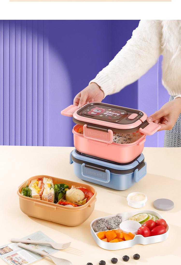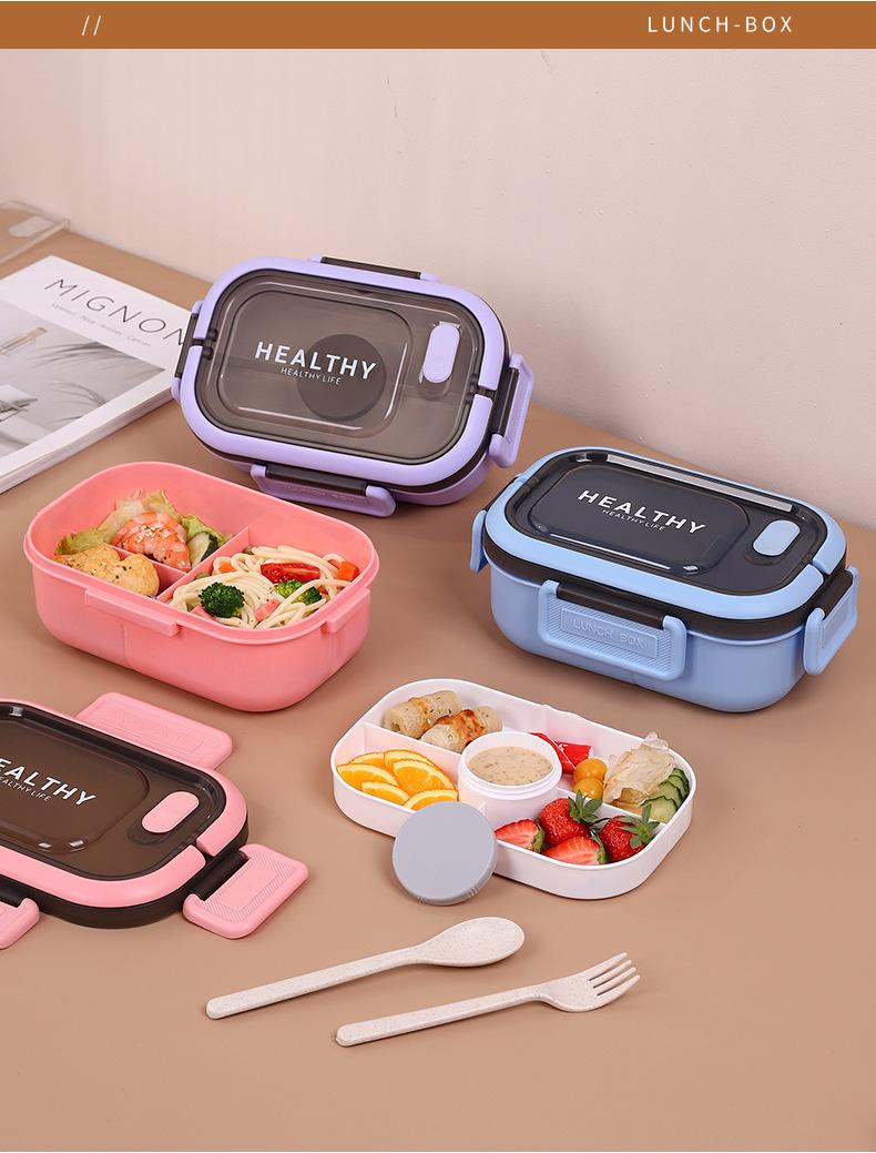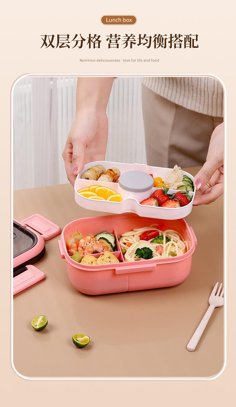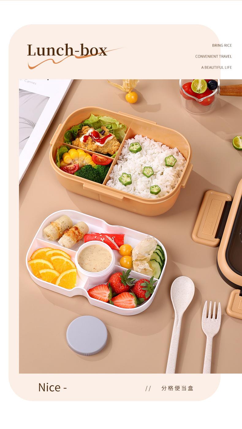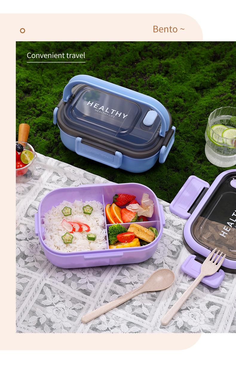 Fiambrera rectangular con compartimento para calentar en microondas, fiambrera portátil de plástico para exteriores, caja de comida para reducir la grasa, fruta