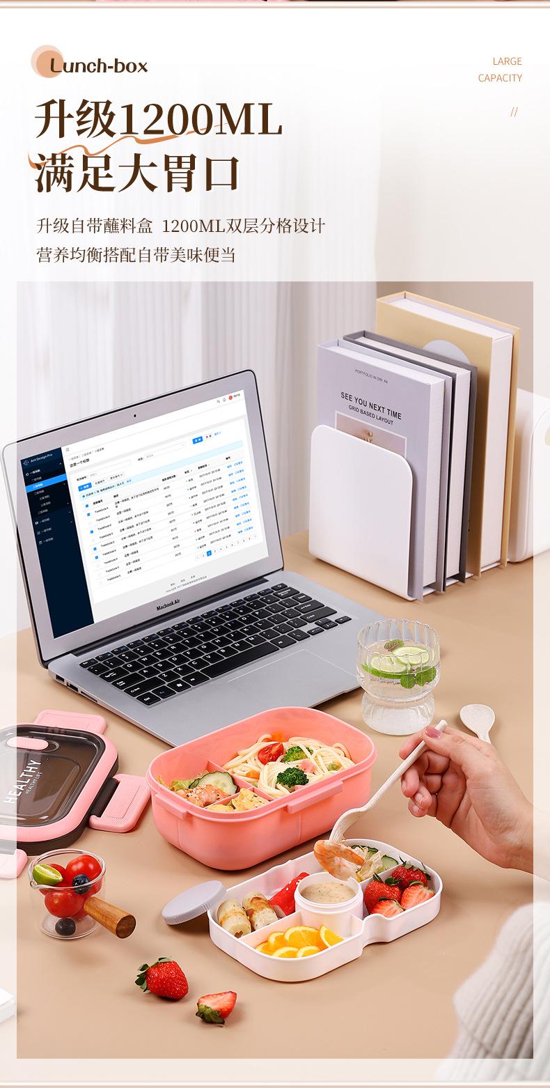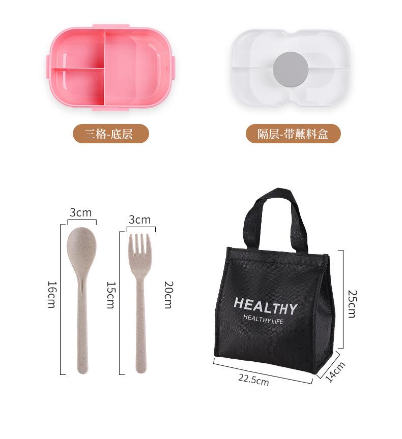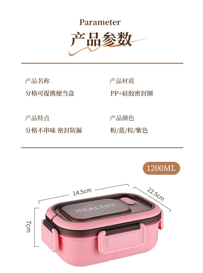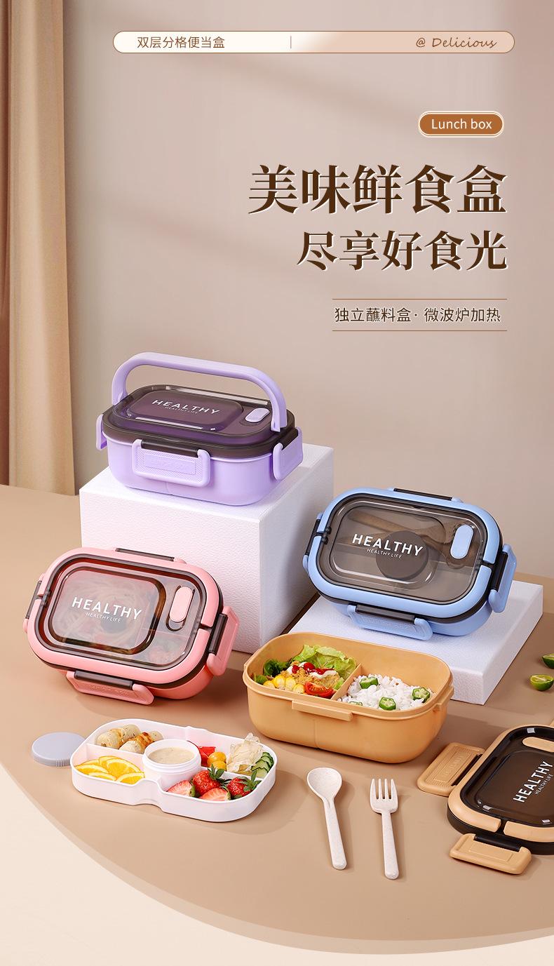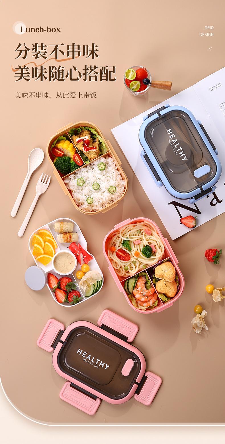 Fiambrera rectangular con compartimento para calentar en microondas, fiambrera portátil de plástico para exteriores, caja de comida para reducir la grasa, fruta