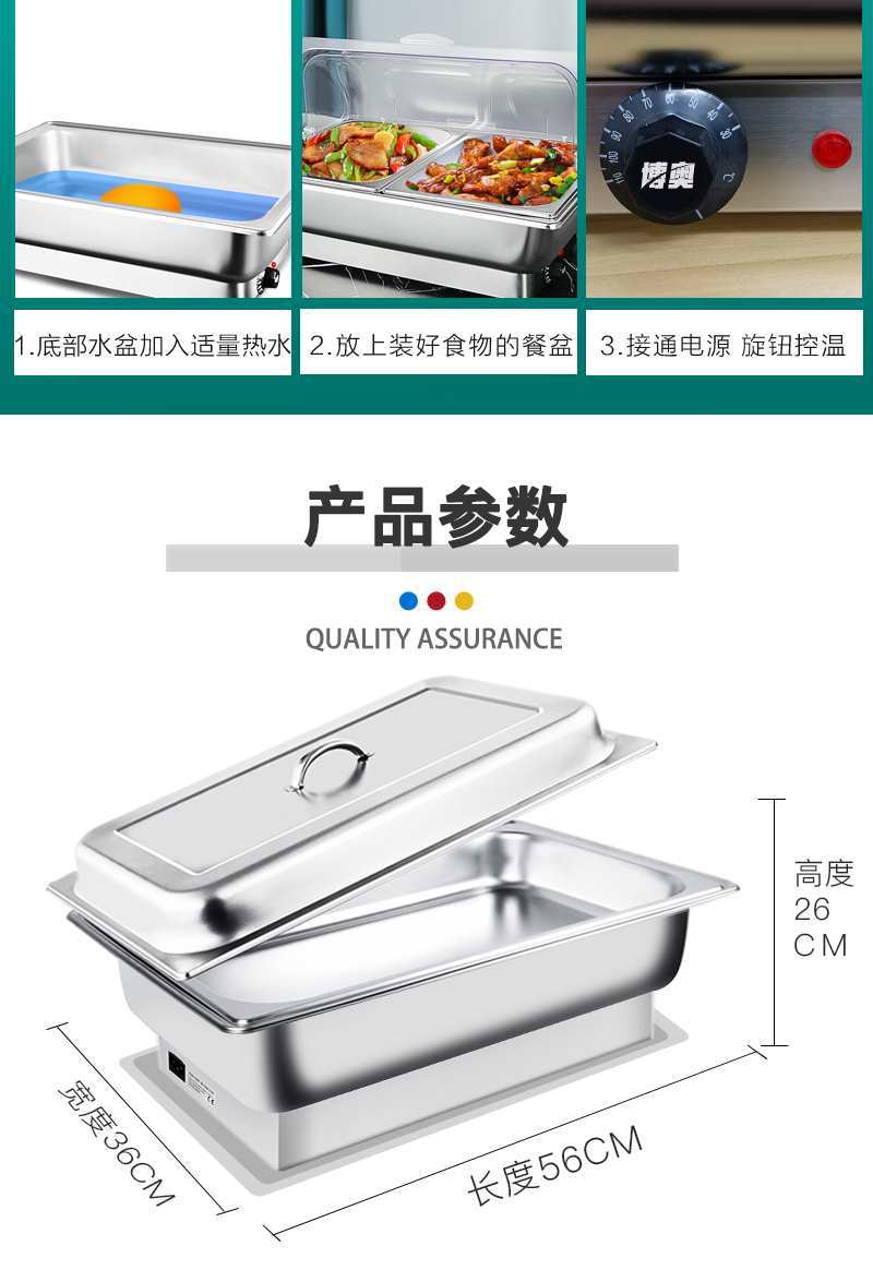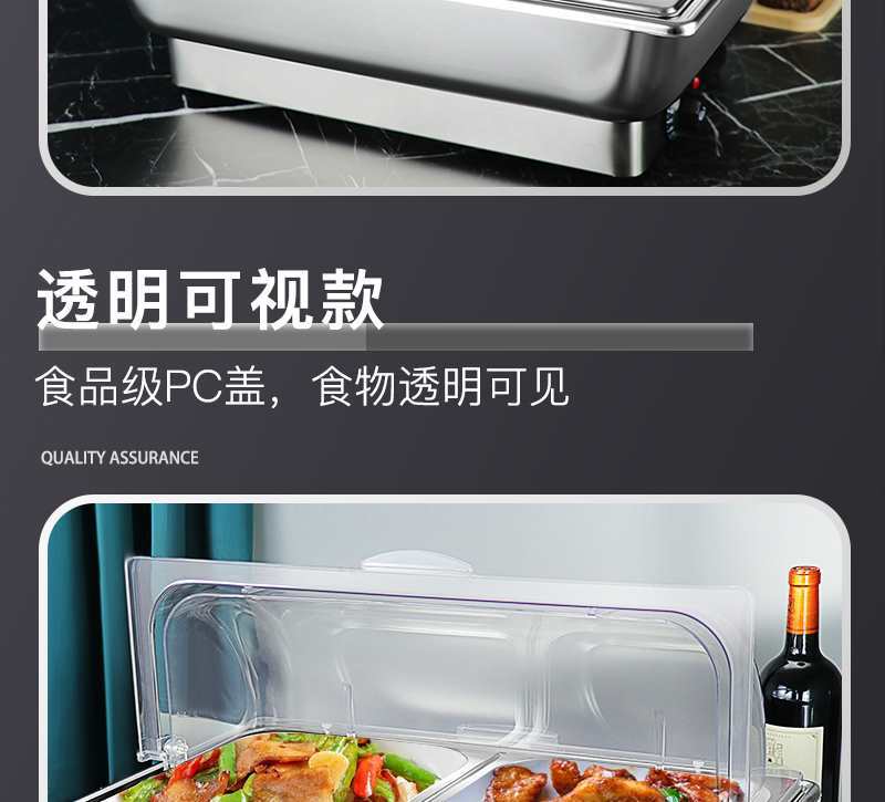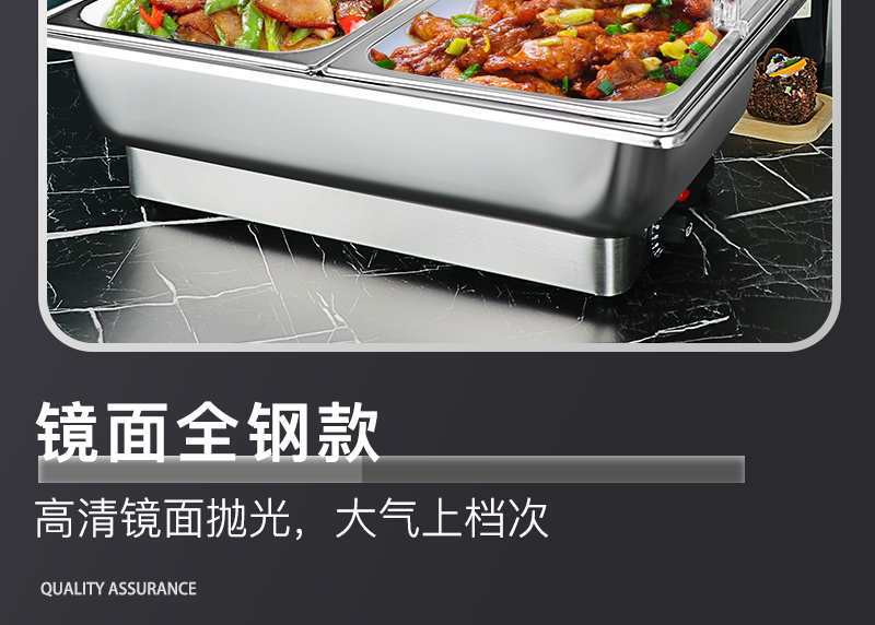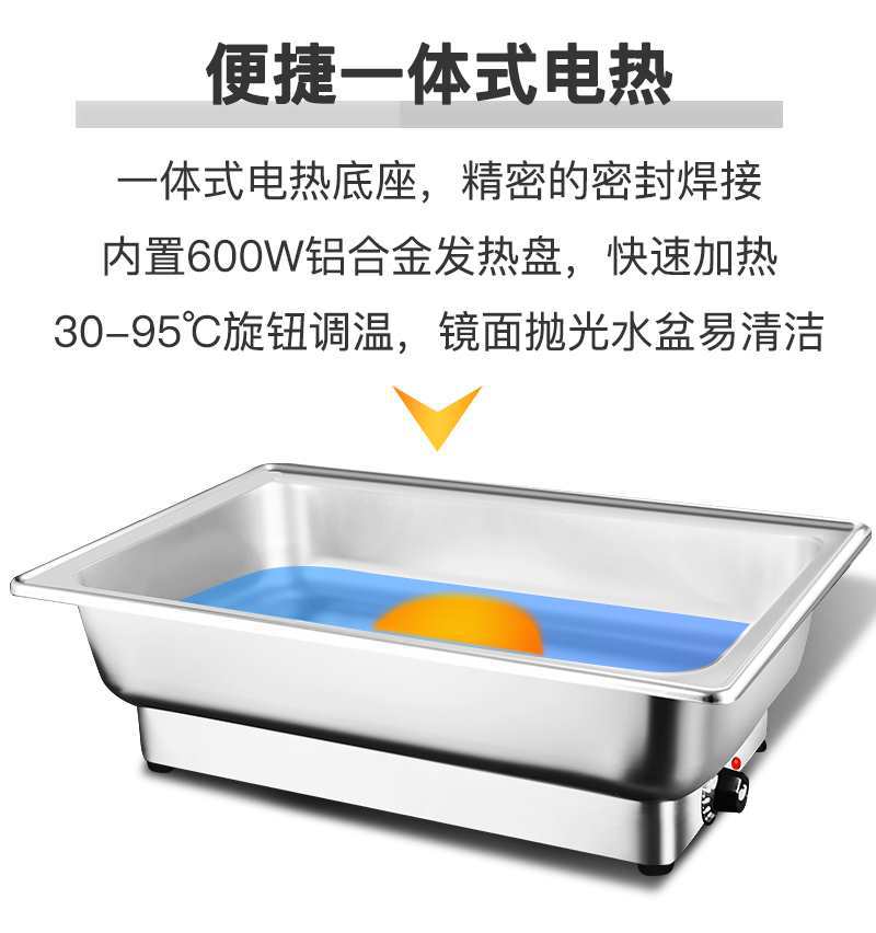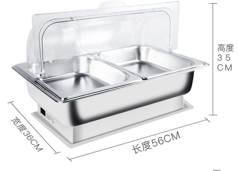 Estufa de buffet de acero inoxidable con calefacción eléctrica, estufa de buffet cuadrada, estufa de comedor de hotel semi-abatible, estufa de calefacción eléctrica con cubierta visual
